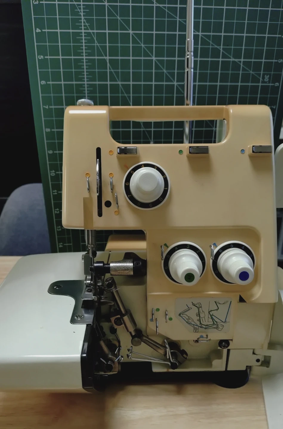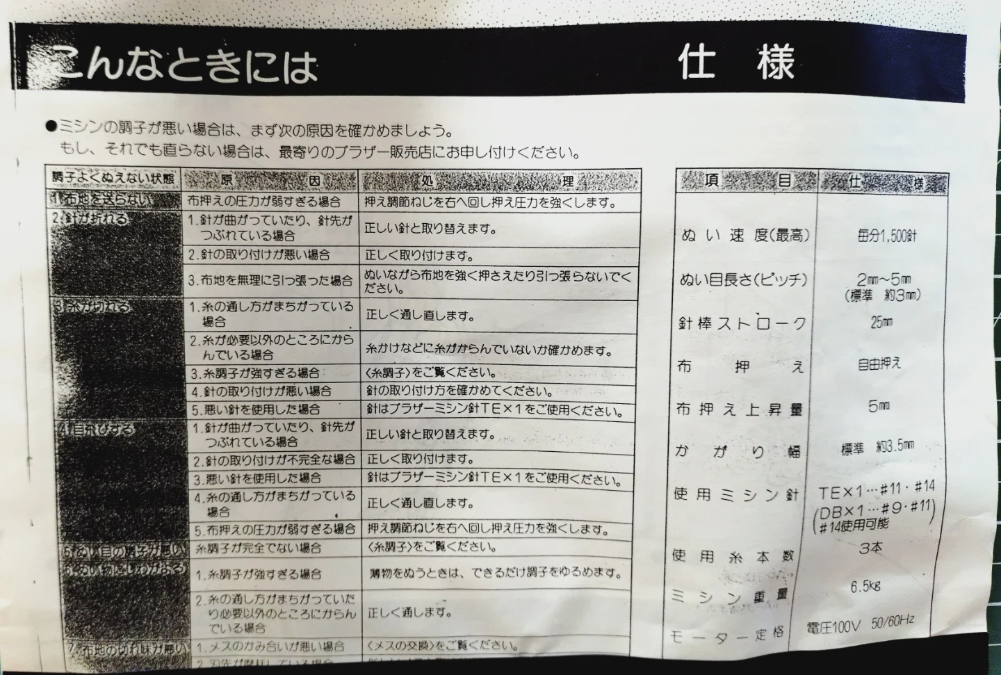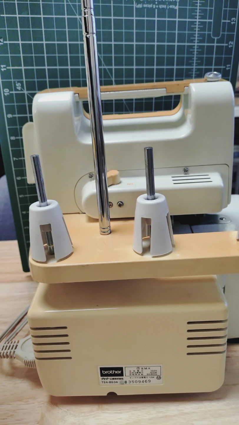 ブラザーのホームロックミシンです。 ブラザーのホームロック TE4-B534は、ロックミシンです ​この機種の「ホームロック」という名称は、特定の機能名ではなく、ミシン自体のシリーズ名または愛称です。ミシンが提供する縁かがり縫い(オーバーロック)機能を指していると考えられます。 ​🧵 ロックミシンの主な使い方 ​ホームロック TE4-B534のようなロックミシンは、布の裁ち目(布の端)がほつれるのを防ぎながら、同時に布をカットし、きれいに縁かがりをするために使います。 ​1. 準備 ​糸かけ: 3本糸または4本糸(機種による)を、説明書に従って正確にかけます。ロックミシンは糸かけが非常に重要です。 ​試し縫い: 縫いたい布と同じ素材のハギレで必ず試し縫いをし、縫い目の状態(糸調子)を調整します。 ​2. 縁かがり縫いの手順 ​布をセット: 縫い始める位置に布の端を合わせ、押さえの下に入れます。 ​縫い始め: 押さえを下げ、ミシンを動かします。布端がミシンに内蔵されているメス(カッター)でカットされ、その直後に複数の糸で縁かがりされます。 ​縫い終わり: 布の端まで縫い進めたら、糸を数センチ残してカットします。残った糸端は、縫い目に絡ませて処理するなどして、ほつれ止めをします。 ​3. 主な調整箇所 ​糸調子ダイヤル: 3本または4本の糸それぞれにダイヤルがあり、縫い目のゆるみや締まりを調整します。 ​メスの幅(かがり幅): 裁ち目の幅を調整します。 ​送り目(縫い目の長さ): 縫い目の間隔を調整します。 ​📌 注意点と補足 ​取扱説明書: ロックミシンの糸かけや調整方法は機種によって異なります。安全かつ正確に使うために、お手元の取扱説明書(もしあれば、PDFなど)を必ず参照してください。 ​ヒント: 「ブラザー TE4 B534 取扱説明書」で検索すると、類似機種のものなどが見つかる可能性があります。 ​用途: ロックミシンは、主にニット生地や薄手生地の縫い合わせ、そして布端の処理に使います。通常の直線縫い(本縫い)はできません。 型番:TE4-B534 機種名:ホームロック 534 電源は入りますが、細かな付属品がありませんが 細かなピンセット(他ので代用可能) 掃除のミシンブラシ(他ので代用可能) 油差し ミシンカバー(他ので代用可能) 糸コマキャップ(なくても問題なし) 使える方がいましたら使って頂けたらと思います 家で使っているミシンはジャノメとジューキの為、ブラザーは使っていないミシンの為、使い方がわかりません 中古品であることをご了承ください。