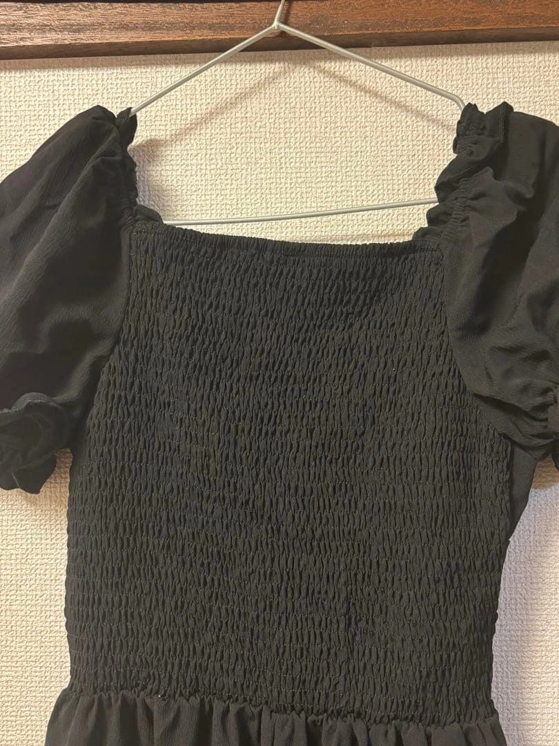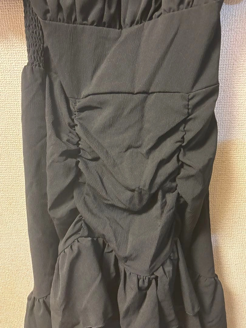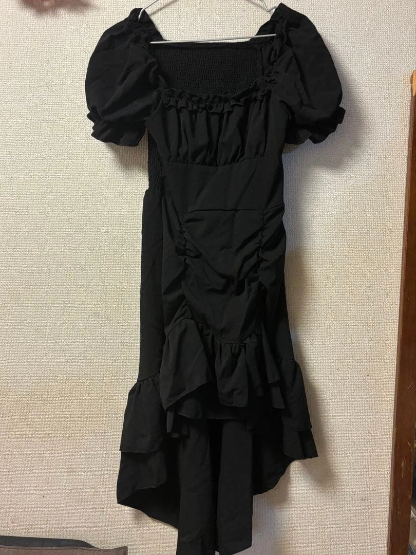 フリルとギャザーが特徴のアシンメトリックなブラックワンピースです。 - 色: ブラック - デザイン: フリル付きのショルダーとウエスト部分のギャザー - スタイル: アシンメトリックな裾のデザイン ご覧いただきありがとうございます。 未着用で綺麗な状態です。 古着ということをご理解していただいた上でご検討ください。 ご希望の方はお気軽にご連絡ください。