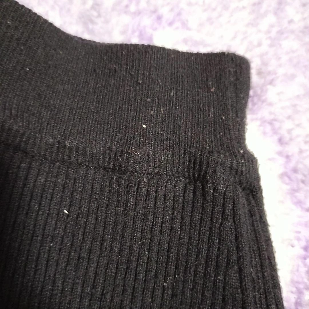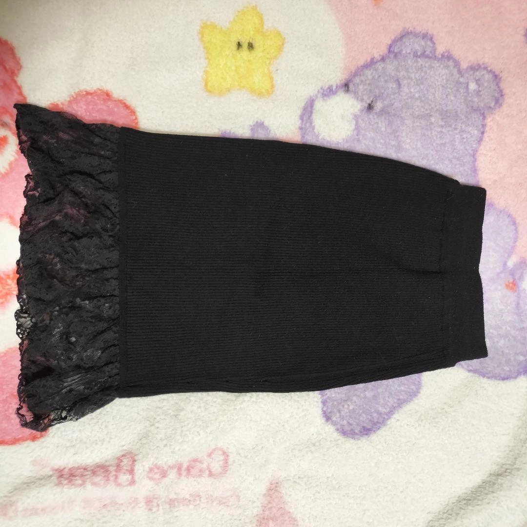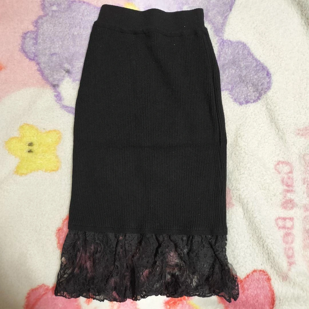 リブ編みとレースの裾が特徴のニットタイトロングスカートです。 - 色: ブラック - 素材: リブ編みニットとレース - デザイン: タイトスカート、レースの裾 - ウエスト: 伸縮性のあるウエストバンド 丈 67cm 花柄のレースがアクセントで上品に着こなせます。スカート上部に少し毛羽立ちや毛玉があります。 ご希望の方はお気軽にご連絡ください。
