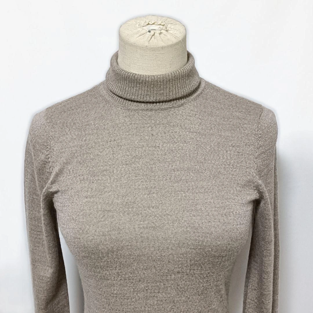 Brooks Brothersのエクストラファインイタリアンメリノウールを100%使用したタートルネックセーターです。 薄手ながらも保温性が高く、肌触りの良い滑らかな着心地が魅力です。ジャケットやコートのインナーとして着ぶくれせずに着用できます。 サイズ:XS(日本のS〜Mサイズ相当) 実寸(cm ):着丈50、肩幅33、身幅40、袖丈60 カラー:やや赤みがかった上品なベージュ系 素材:ウール100%(エクストラファインイタリアンメリノウール) 目立った汚れやダメージはありません。 ご不明点はお気軽にお問い合わせください。