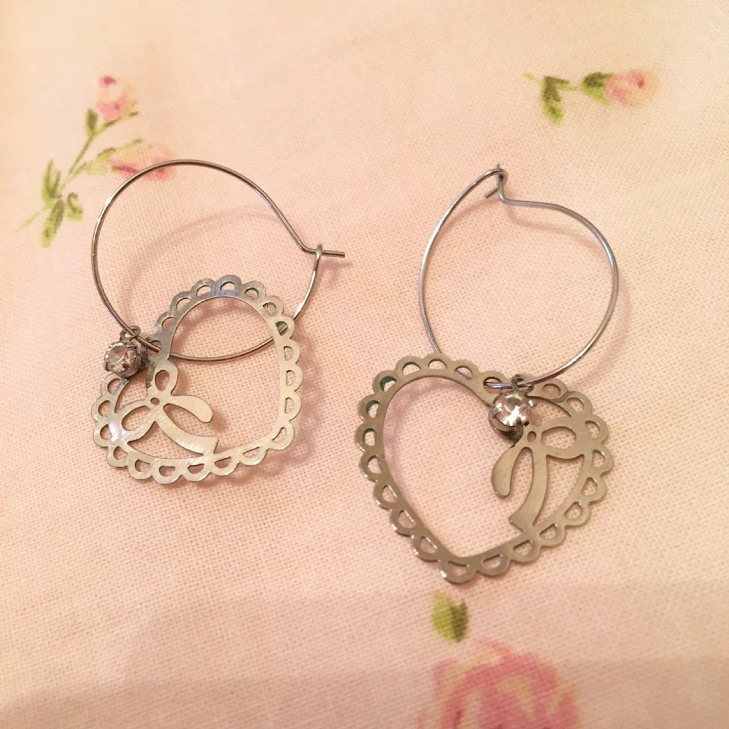 1 オープンハートのブレスレット 未使用品 2 リボンとストーンのレース風ピアス 未使用品 3 ラインストーンのネックレス 少しだけくもりがあります 全てシルバーです。 3点まとめてお安く出品します。 材質···その他シルバー カラー···シルバー モチーフデザイン···ハート、リボン 月島駅まで取りに来てくださる方にお譲りいたします。