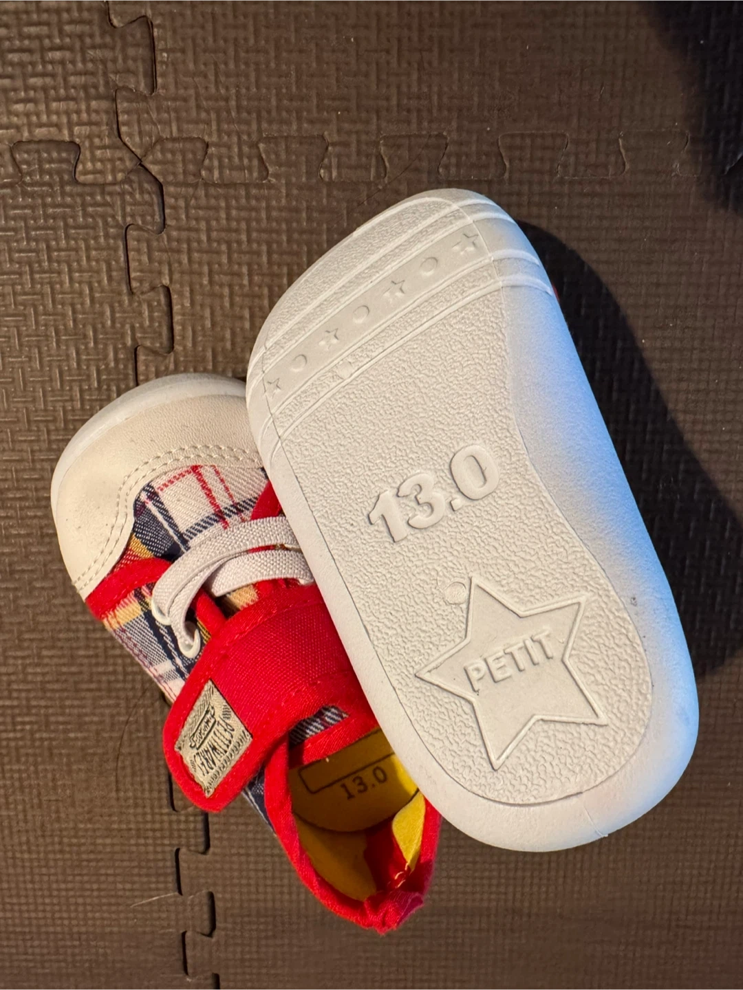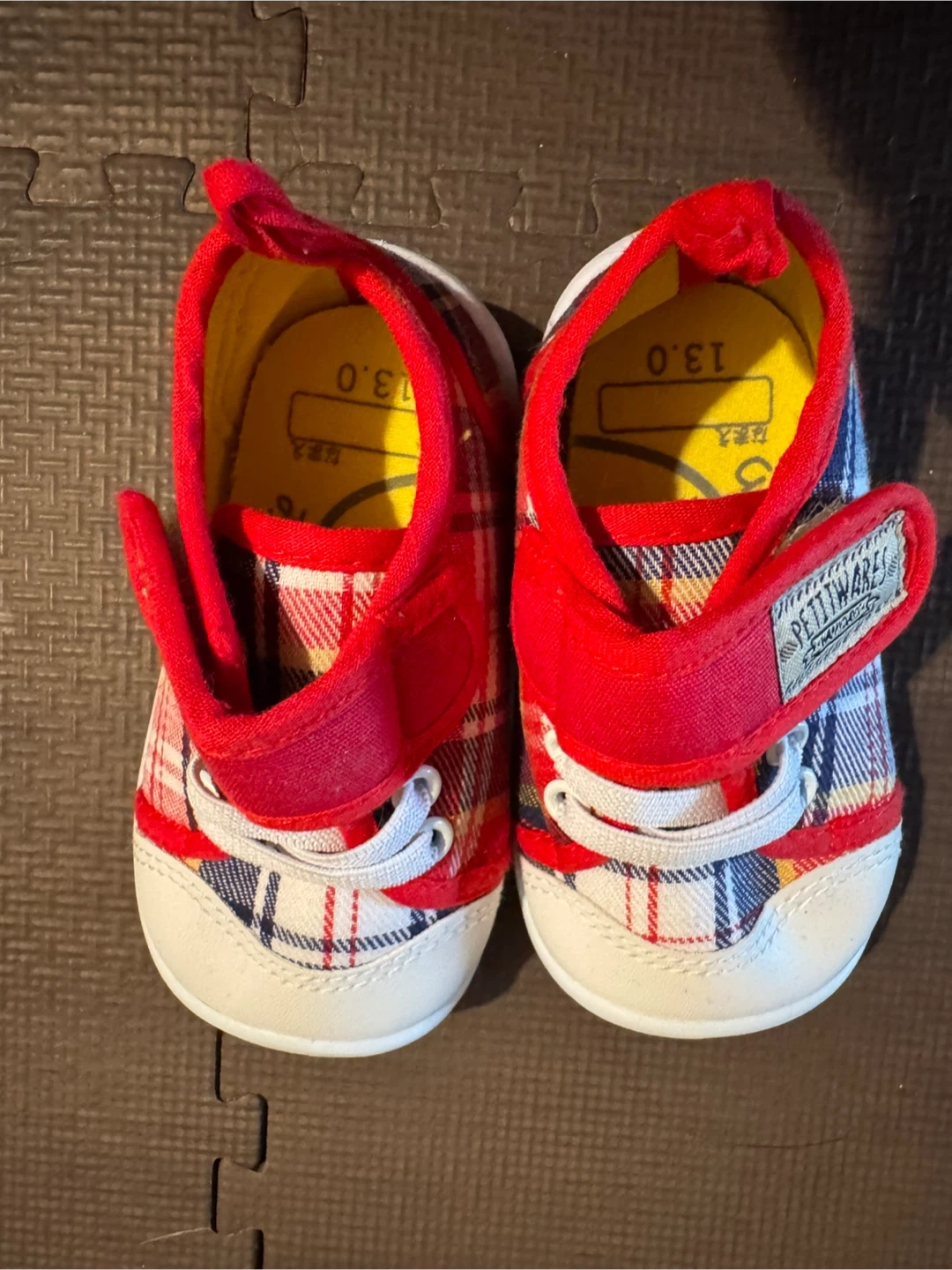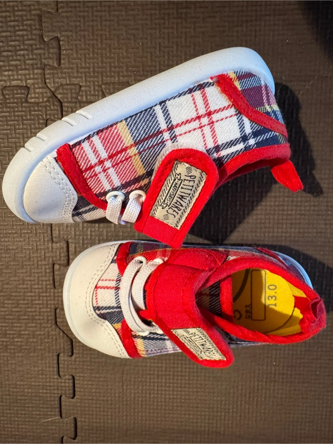 プチウェアーズの靴です ・サイズ:13.0cm ・色:赤、白、青のチェック柄 ・マジックテープで着脱 タグは切ってありますが 履く前にサイズアウトしてしまった為 履いてません。なので新品未使用です。 ご不明点があればお気軽にご連絡ください