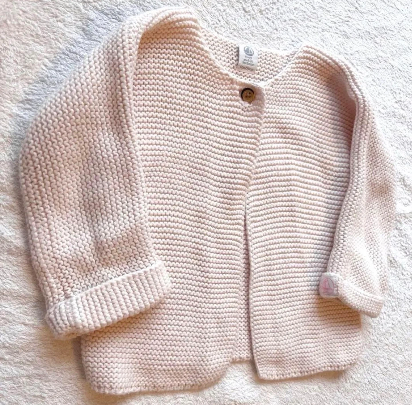 あたたかさプチバトーのカーディガンです。 写真だと分かりにくいですが、うすピンクです。 ・色:ピンク ・素材:ニット ・ボタン1つ ・使用感少なめ ご不明点があればお気軽にお尋ねください。