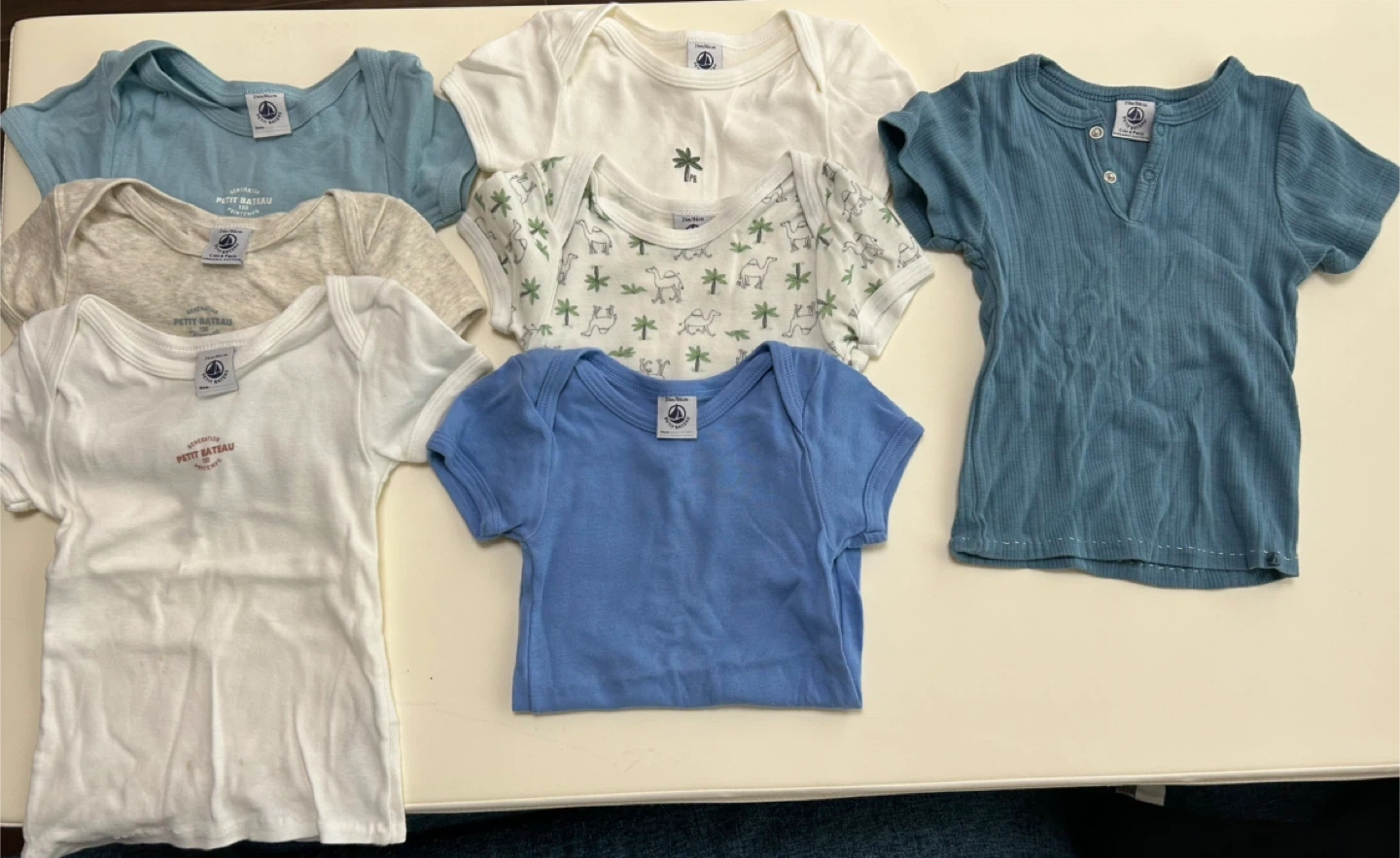 プチバトーのベビー服です。 ・7枚セット ・使用感あり  白のみ汚れがあります ・もともと肌着ボディの股下を切って縫っています  素人の手縫なので細かい部分気にならない方 ご不明点があればお気軽にご連絡ください。