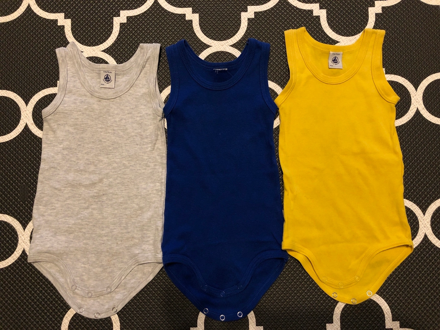 プチバトーのベビー肌着です ・サイズ:12M/74cm ・カラー:グレー、ネイビー(青) イエロー ・目立つキズはないですが、使用感はあります。 青は襟元のタグは切ってしまっています。 まだまだ暑いですので、この一夏だけでもたくさん着て頂けるかと思います。 中古品であることご了承ください