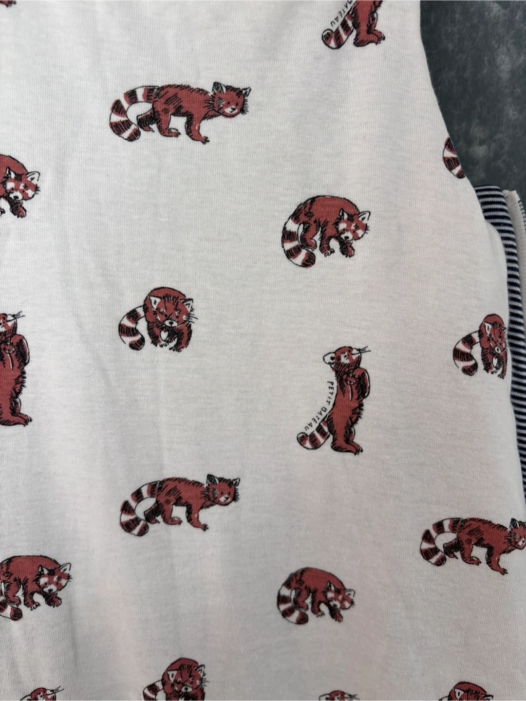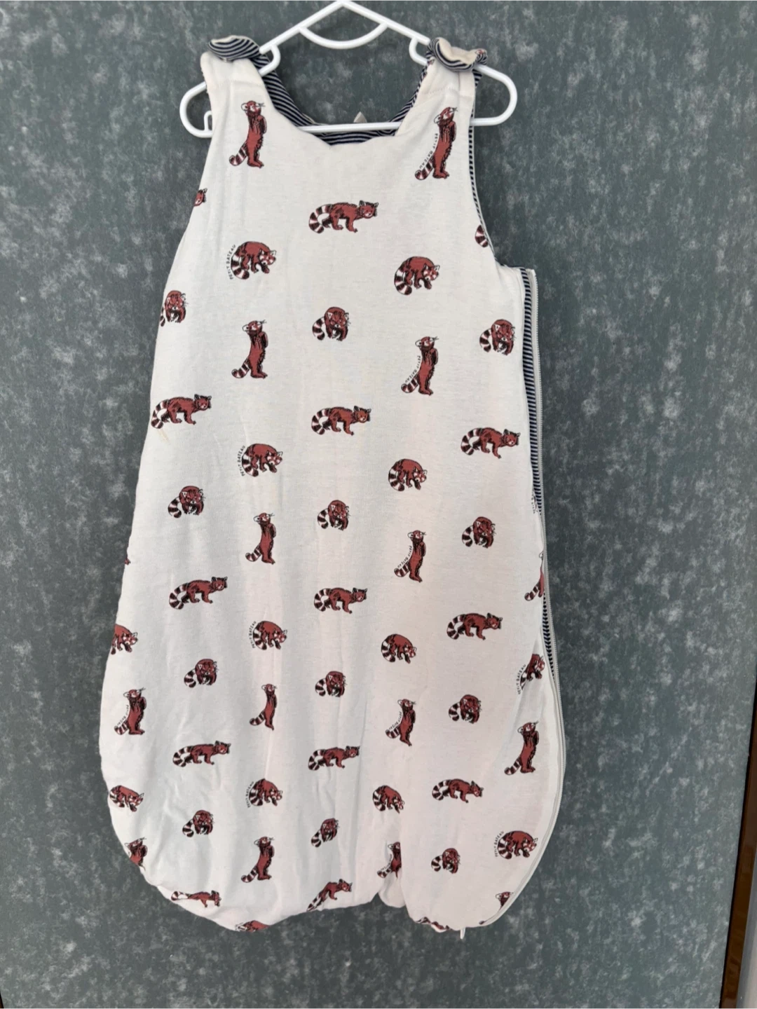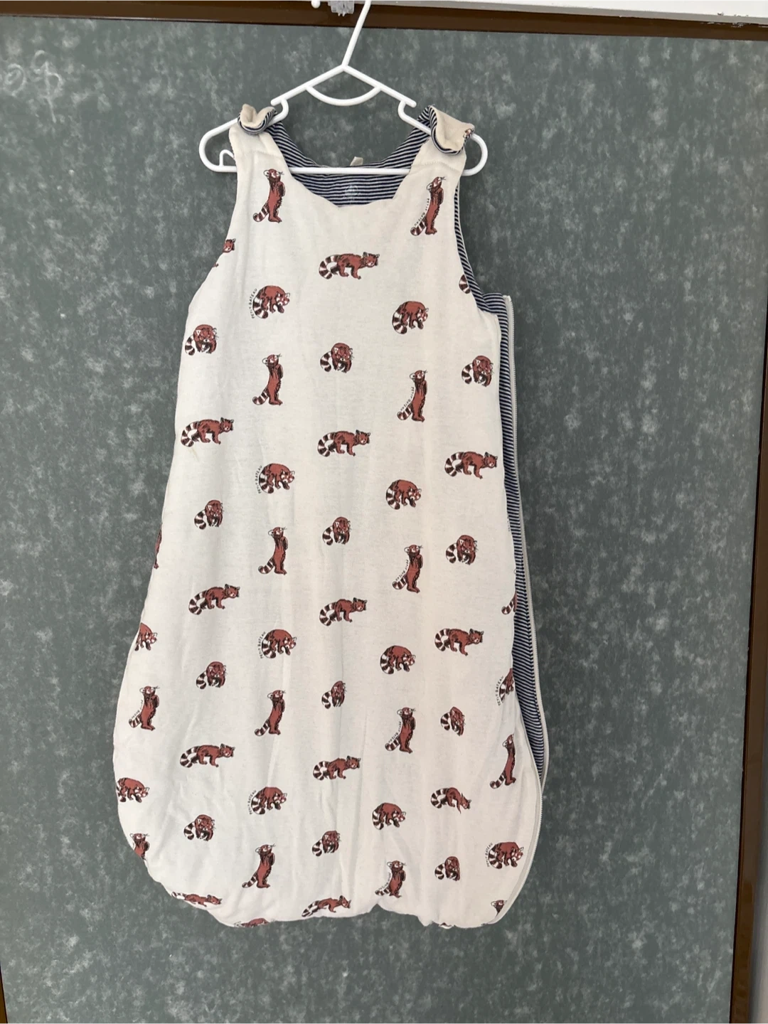 プチバトーのベビースリーパーです。 寝袋タイプなので寝返りをしても足が出ない為とても暖かいです。冬用のスリーパーなので生地も分厚いです。4.5枚目に少し汚れがあります。 ・ブランド:プチバトー ・柄:赤パンダ柄 ・裏地:ストライプ ・TOG値:2.4 中古品であるということをご了承の上ご購入ください。 ご不明点があればお気軽にご連絡ください。 平日の9時過ぎ〜15時は基本的にお取引可能な時間帯です。