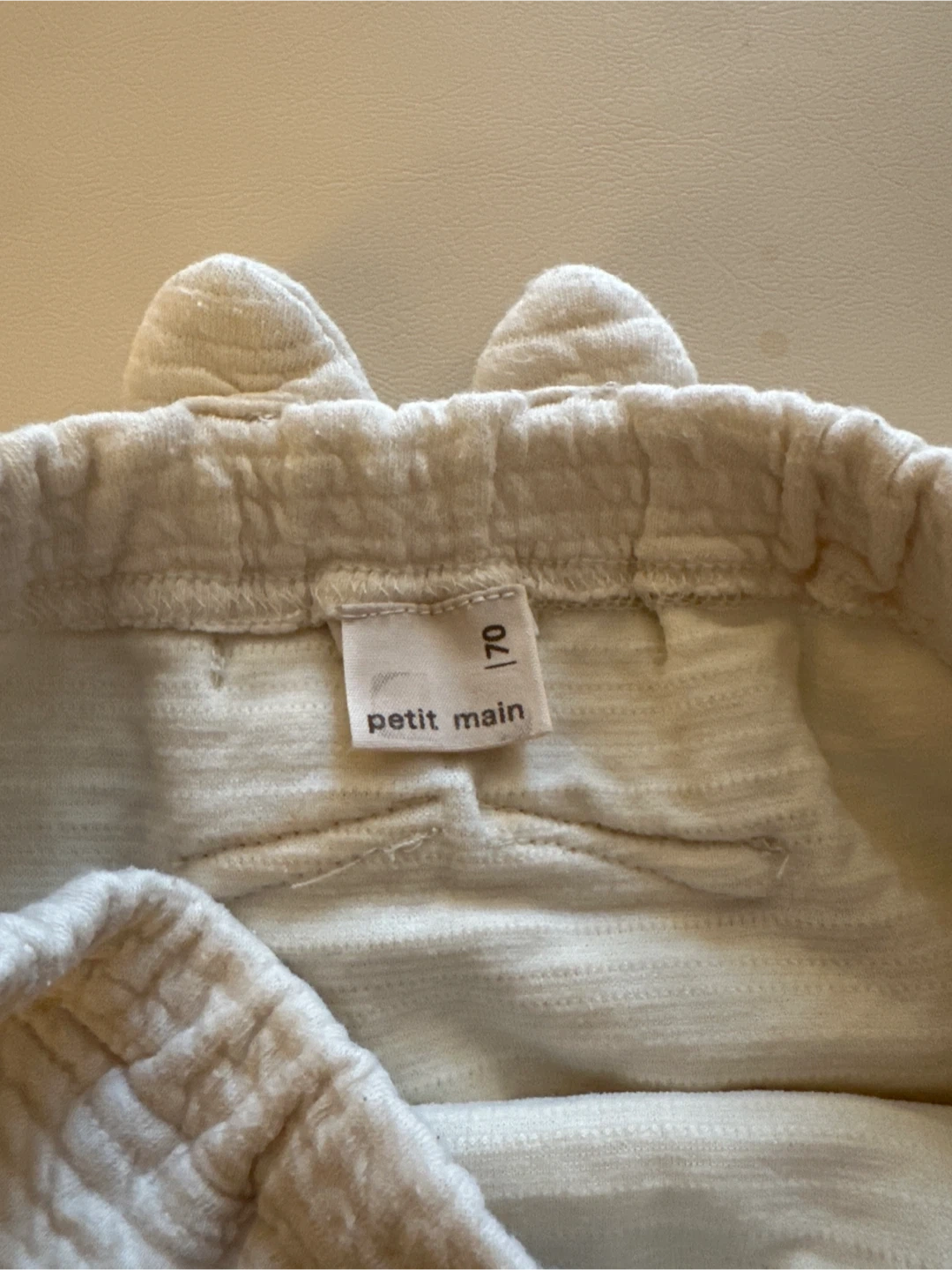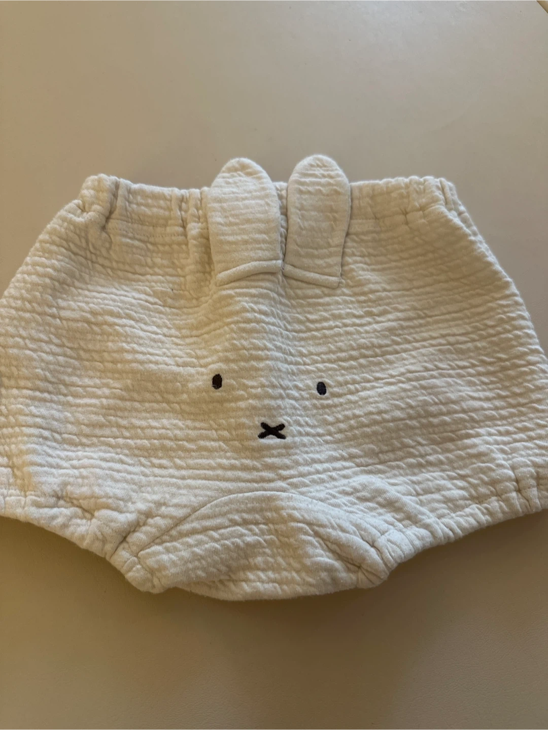あたたかさプティマインのベビーブルマです。 ・ブランド:プティマイン ・サイズ:70 ・色:白 ・デザイン:ウサギの顔 ・状態:使用感少なめ 中古品であることをご了承ください。