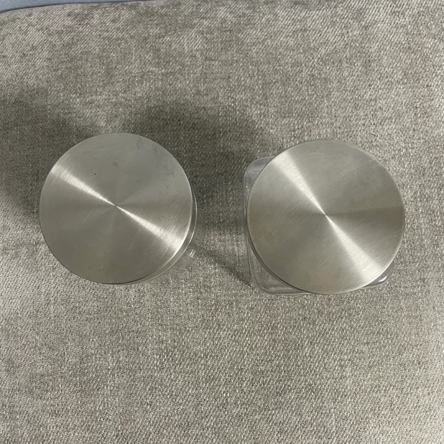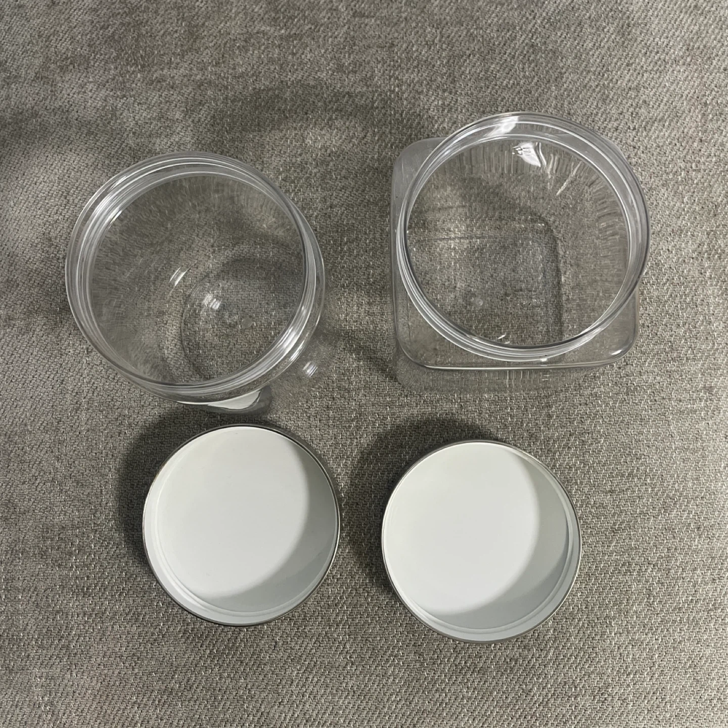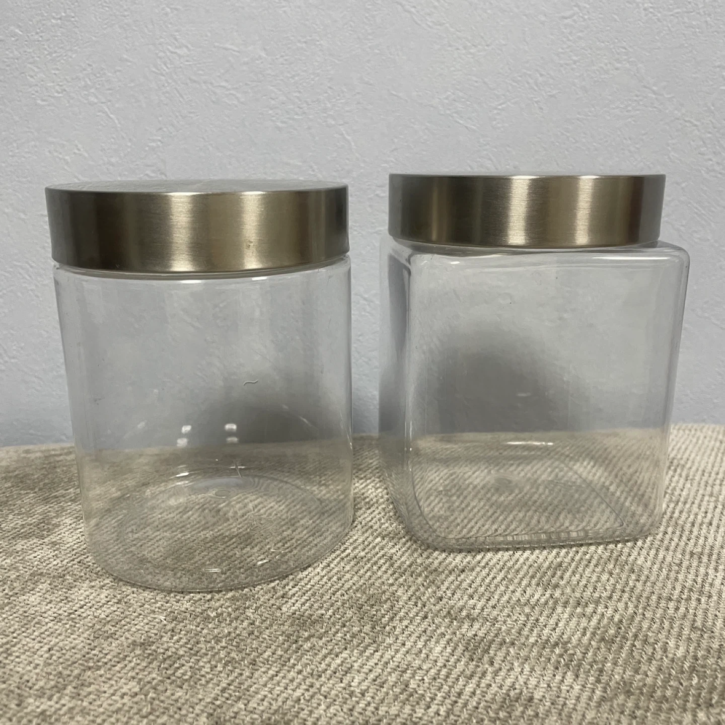 プラスチック容器2個セットです。 ・形状:円柱型、四角柱型 ・材質:プラスチック、金属 ・状態:目立つキズなし 中古品であることをご了承ください。 用途 ・お菓子入れ ・糸、毛糸、リボンの入れ物 ・個包装の砂糖、ガムシロップ入れ ・ほこりを付けたく無い小物の飾りに使えます!試しにクリスマス、お子さんの小さなおもちゃを入れて飾りました。 小さなパーツも無くす事なく、飾りながら保管出来ます。 クリスマスの飾り、松ぼっくり、綿、シルバーの糸はおまけでお付けします。 LEGOは付けられません。 サイズ 円形:直径10cm✖︎高さ12.5cm 角型:10cm✖︎10cm✖︎13cm 値段は単品の値段です。 プラスチックなので、落としても割れない、大きいサイズだけど重く無い! 小さなお子さんでもおもちゃを入れて運べます🎵 重さ: 130g 待ち合わせ場所は三鷹、吉祥寺、西荻窪、武蔵関、上石神井、東伏見辺りでお願いします。