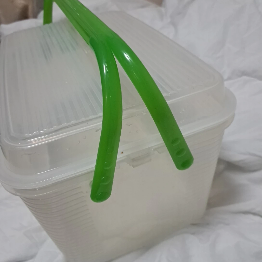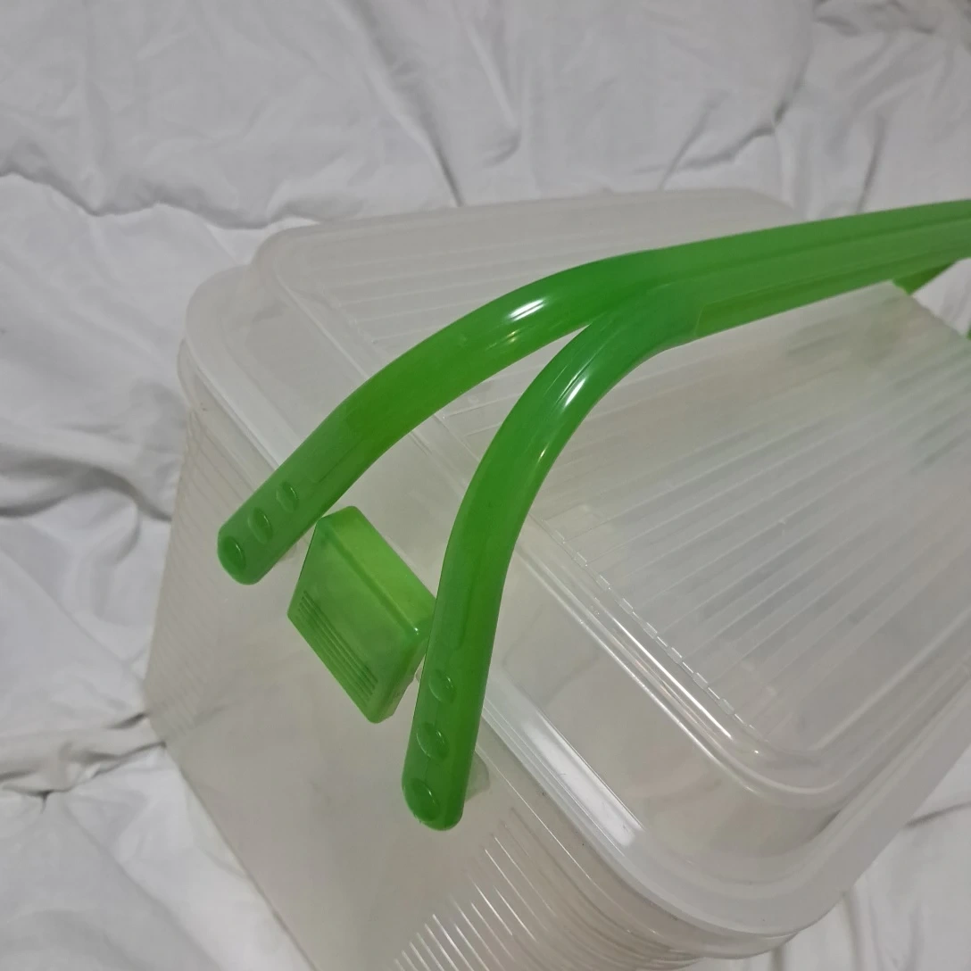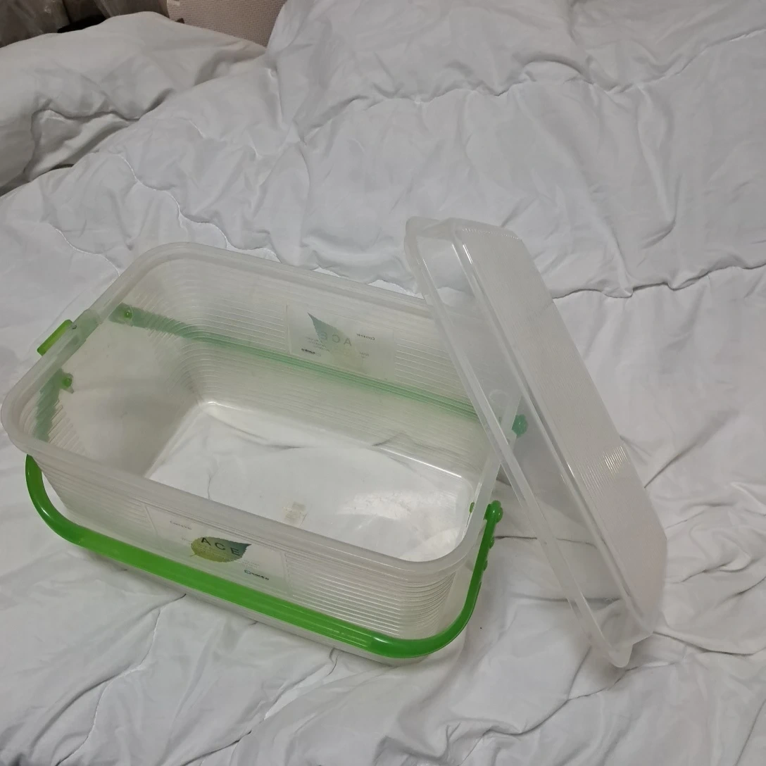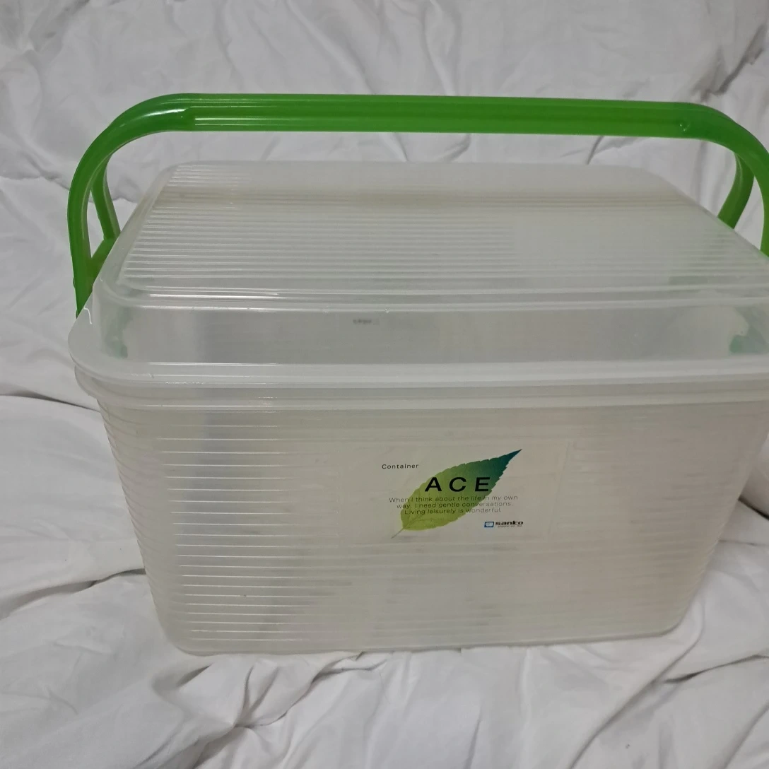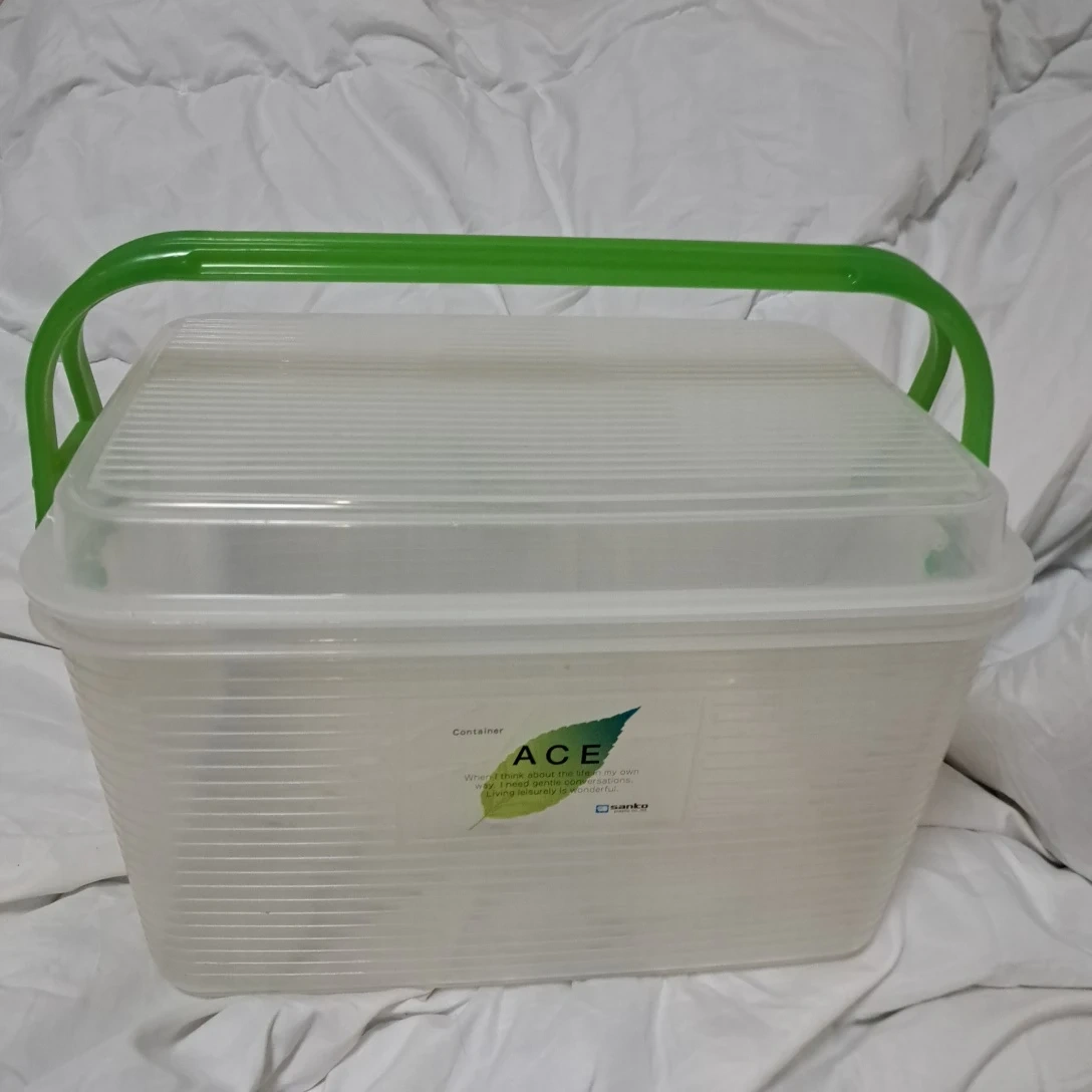 アセのコンテナです。 ・ブランド:アセ ・カラー:クリア ・持ち手:グリーン ・状態:使用感あり 持ち手付き、片方蓋ロック有り 宜しくお願い致します 中古品であることご了承ください。