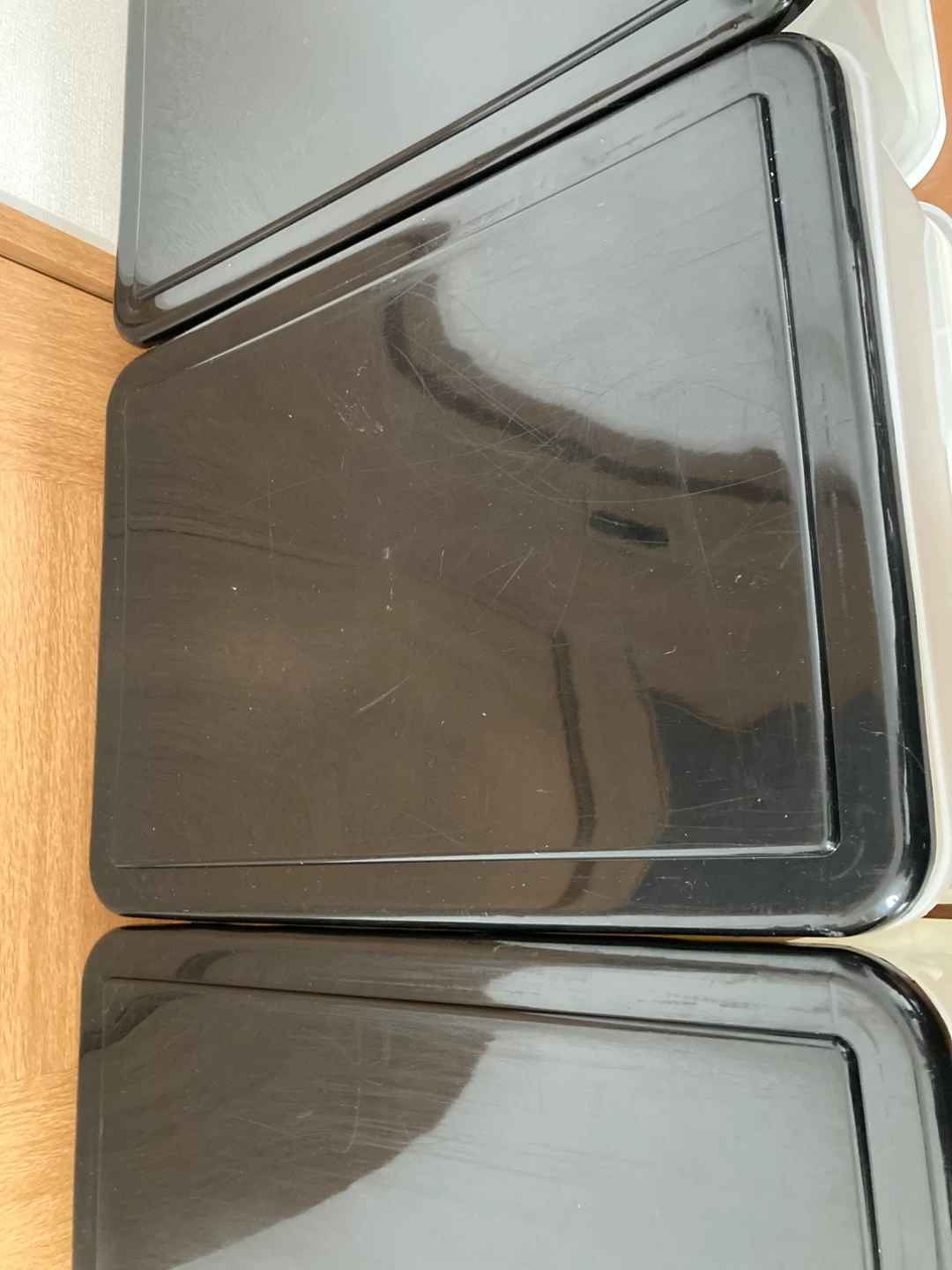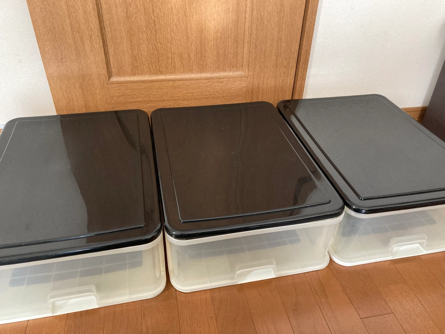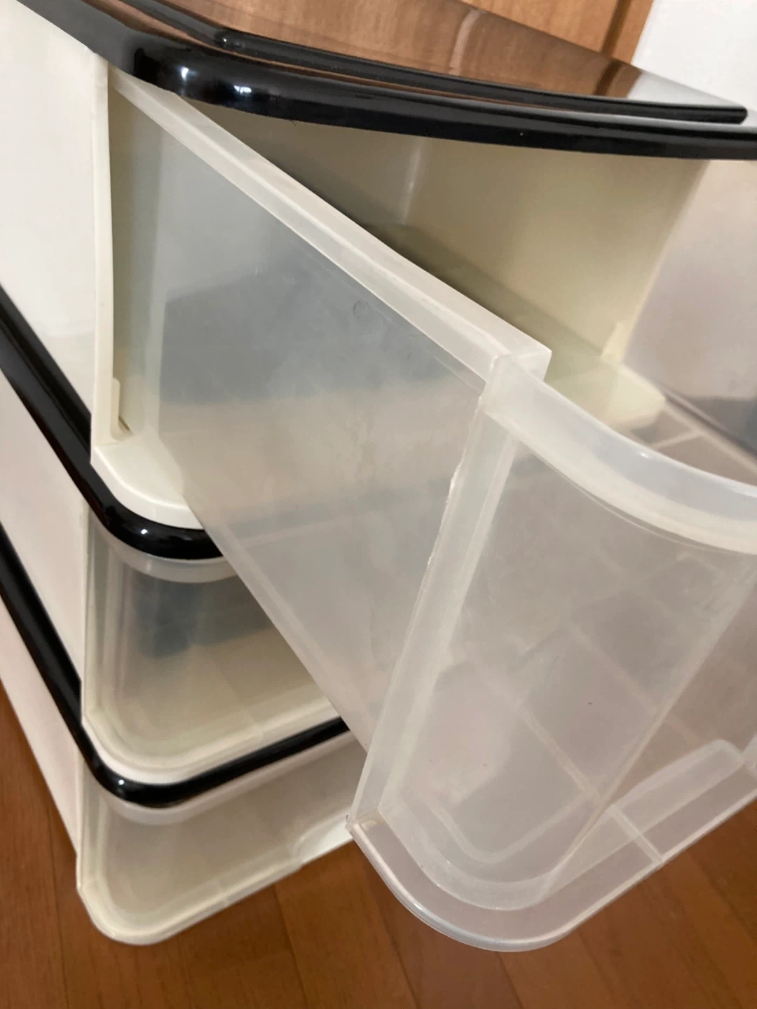 プラスチック製の収納ケースです。 ・3段 ・色:ホワイト、ブラック 内寸35.5×51×15 三段重ねた高さ57cm 出品にあたり1つ1つ磨きました。 それでも経年による汚れやくすみ、傷はあります。ご了承ください。 ケースとしては、まだまだ充分にお使いいただけます。