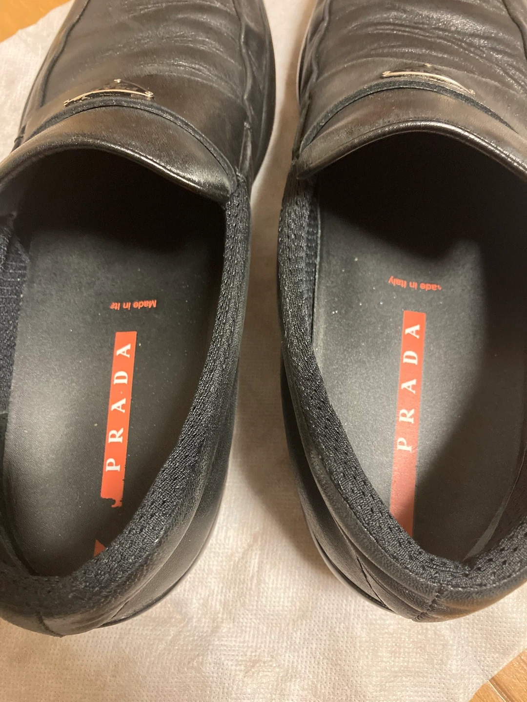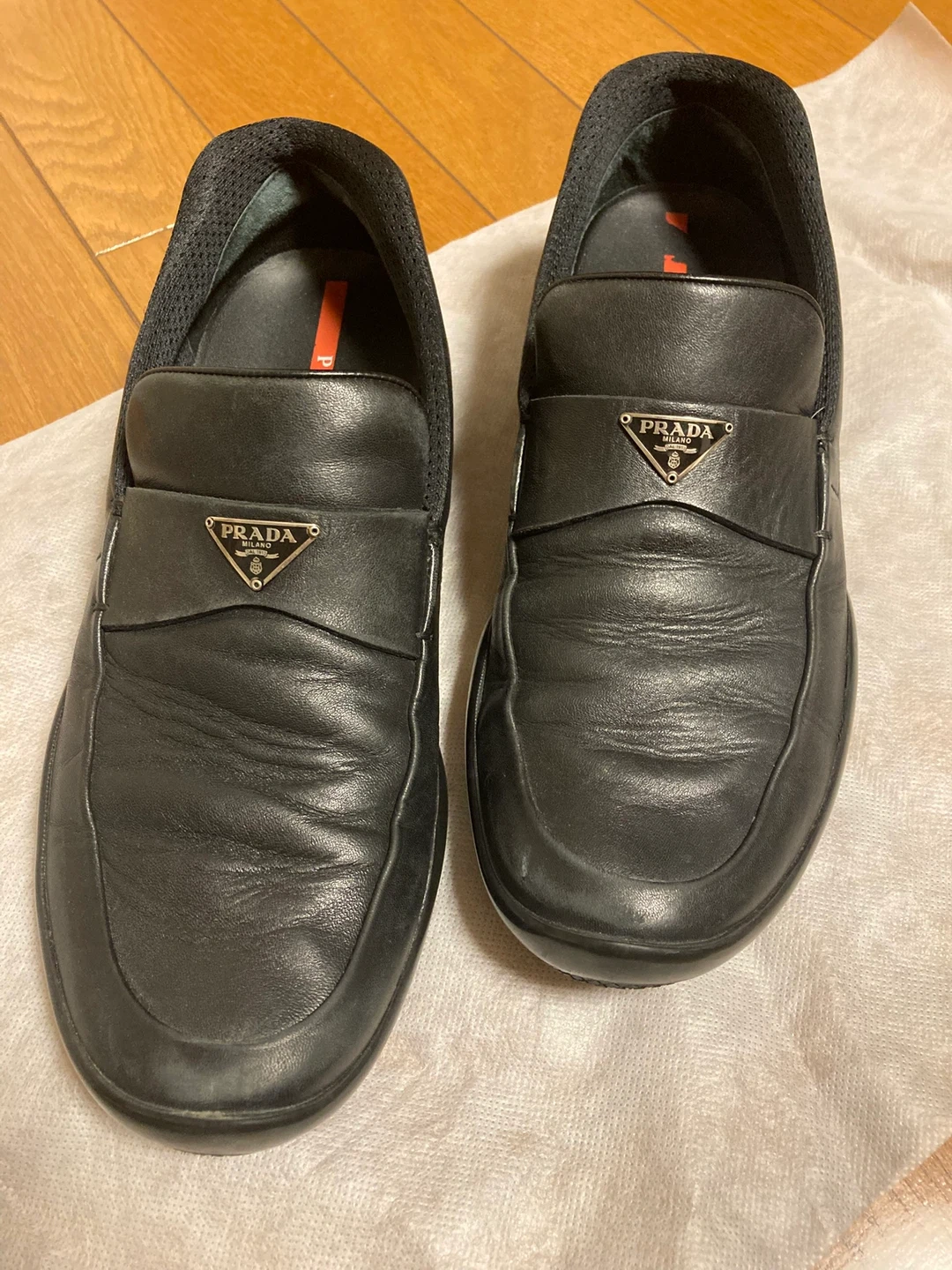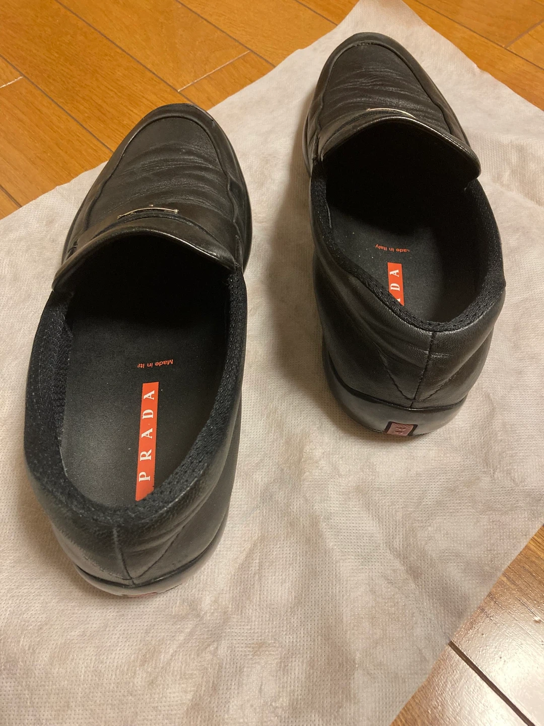 プラダのレザーシューズです。 【情報】 ブランド:プラダ モデル:4D1029 Nappa Sport 'B' サイズ:7.5 カラー:Nero(ブラック) 【状態】 使用感はありますが、目立つ傷はありません。 中古品であることをご了承ください。 普段26cmを履いていますが、少し大きく感じました。26.5〜27cm履いている方ならサイズが合いそうです。