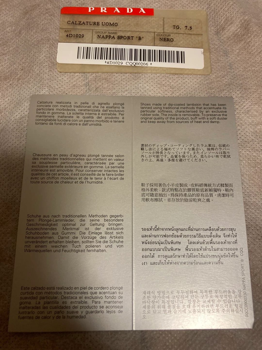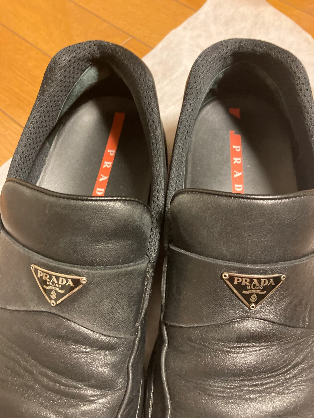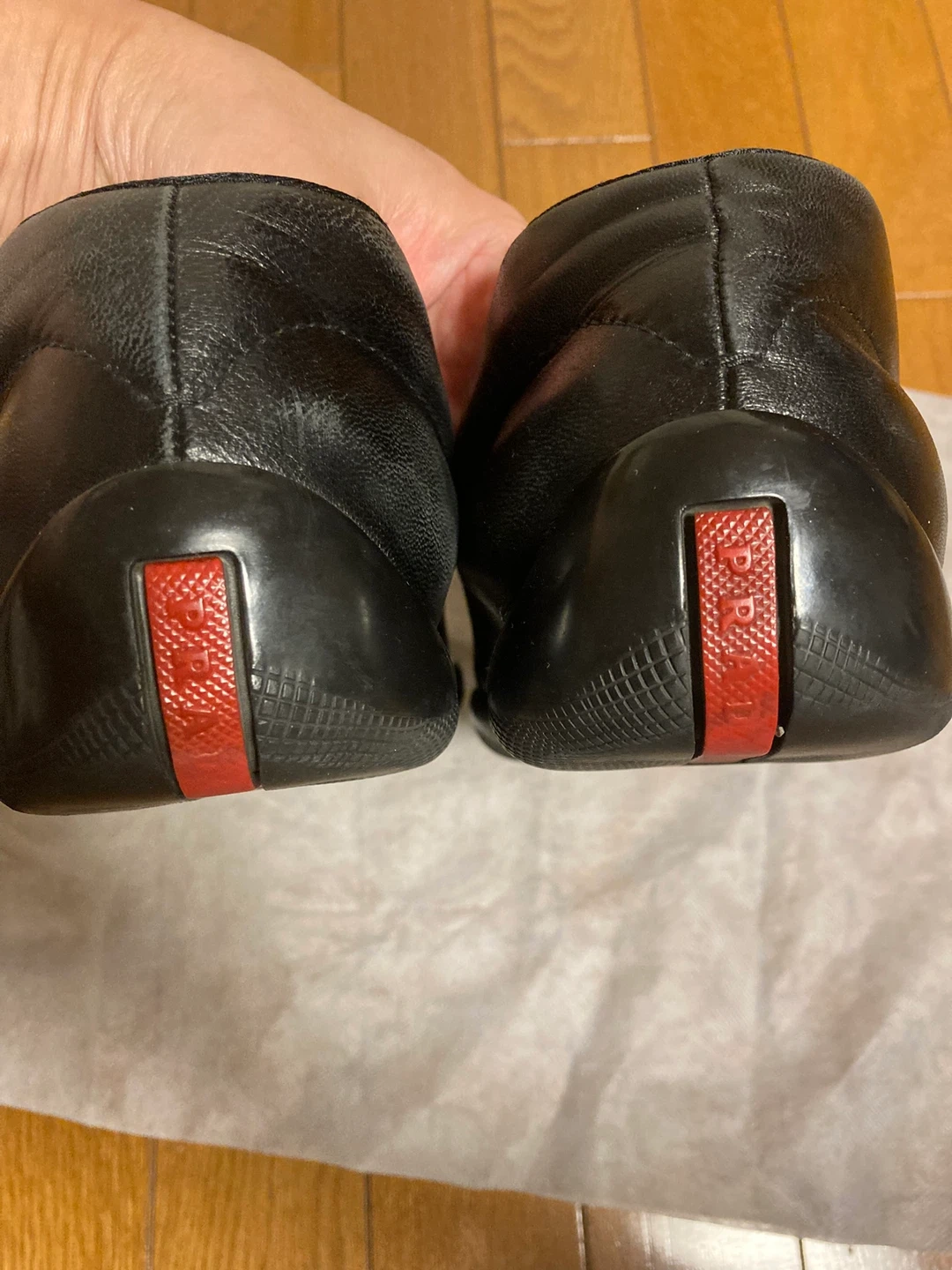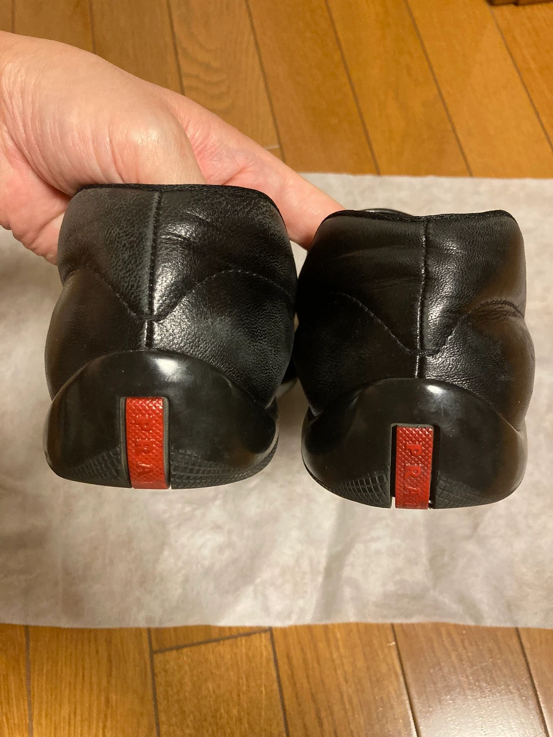 プラダのレザーシューズです。 【情報】 ブランド:プラダ モデル:4D1029 Nappa Sport 'B' サイズ:7.5 カラー:Nero(ブラック) 【状態】 使用感はありますが、目立つ傷はありません。 中古品であることをご了承ください。 普段26cmを履いていますが、少し大きく感じました。26.5〜27cm履いている方ならサイズが合いそうです。