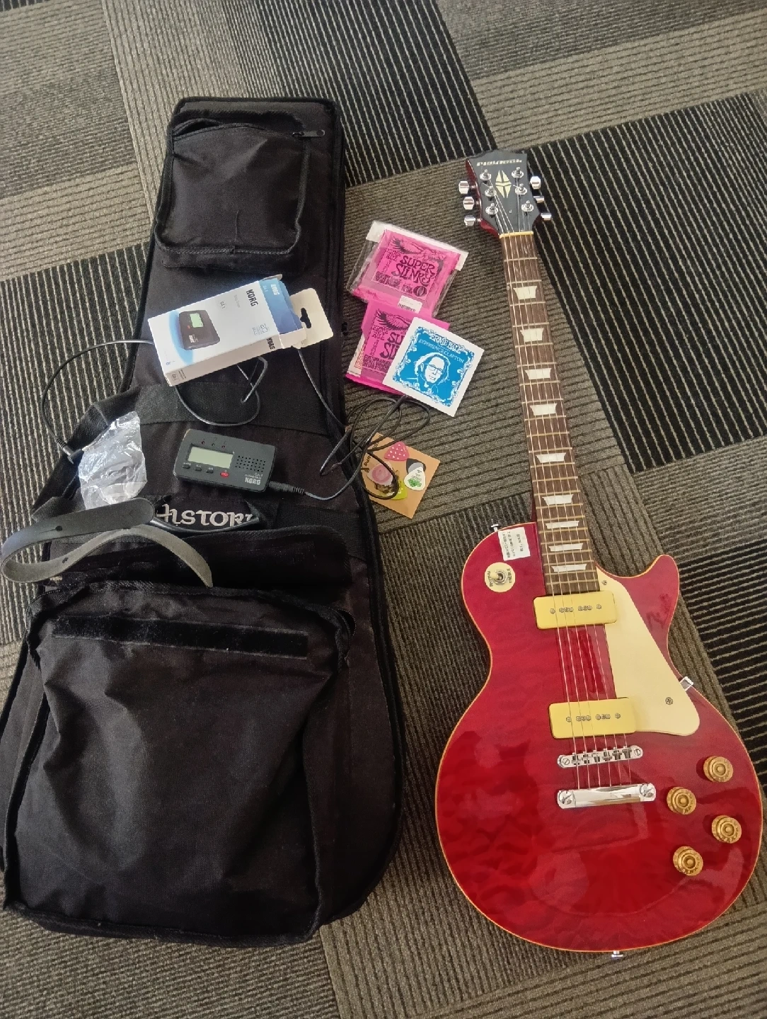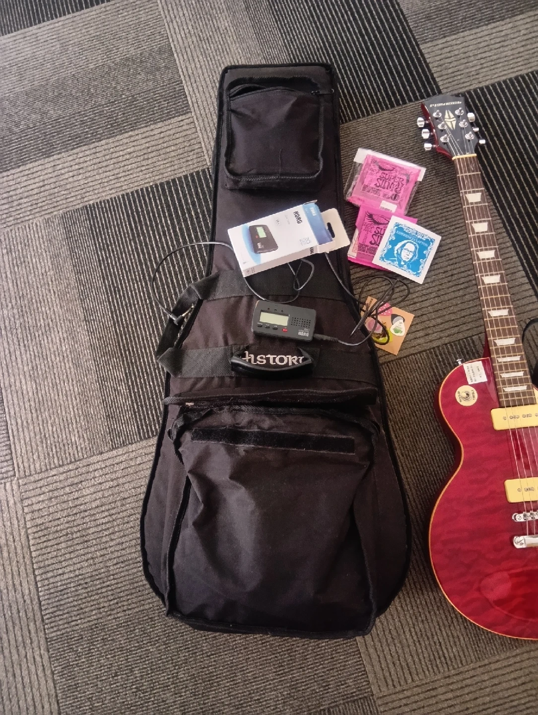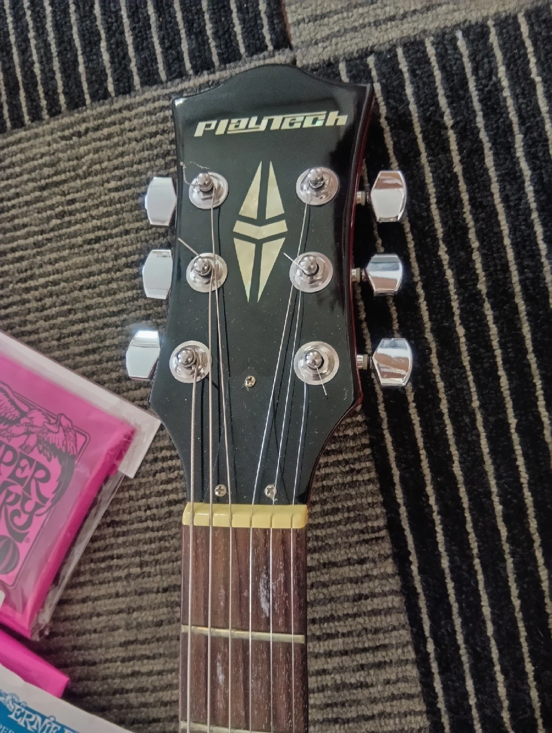 プレイテックのエレキ ギターです 【情報】 ブランド:プレイテック 種類:エレキギター 色:赤 【状態】 比較的きれいです 【付属品】 ギターケース、チューナー、弦、ストラップ 中古品であることご了承ください