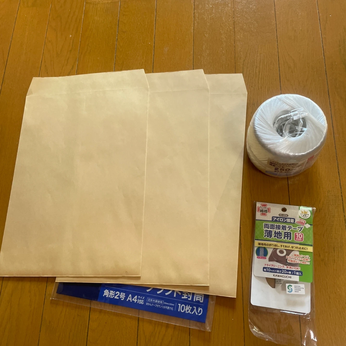 他の物をご購入頂いた方にお礼として差し上げます。他に欲しい物をご連絡下さい。 封筒などのセットです。 ・【新品未使用、未開封】カラー封筒 角形2号 4枚入 ・角形2号 A4サイズ対応封筒 ・クラフト封筒 角形2号 A4サイズ (3枚) ・両面接着テープ 薄地用 10mm幅 ・ダイソー:リサイクル素材を使用した梱包材(荷造りひも) 中古品であることをご了承ください。