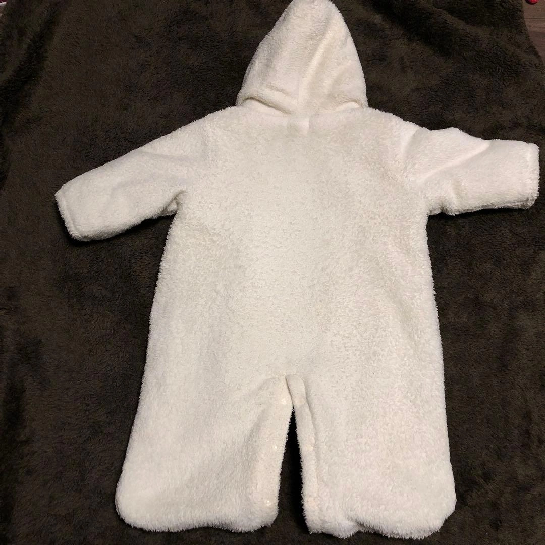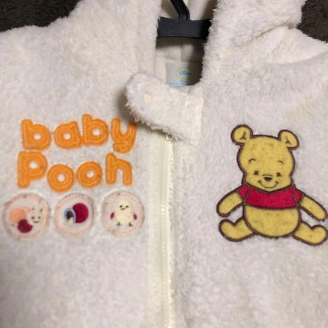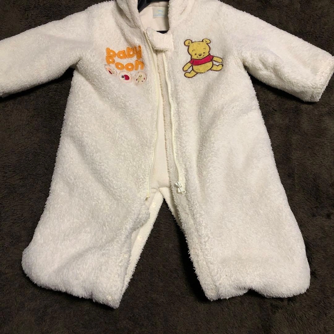 新生児から使えるフード付きカバーオールです。 とても暖かく、足の部分は2wayでスナップボタンで留めることで、形を変えられます。 プーさんとBaby Poohの刺繍があり、素材はポリエステル100%です。防寒に最適かと思います。 - サイズ: 50〜70 - 素材: ポリエステル100% - デザイン: プーさんとBaby Poohの刺繍 - スタイル: フード付きロンパース - 対象年齢: 3〜9kg ※写真のハンガーは付きません ご希望の方はお気軽にご連絡ください。