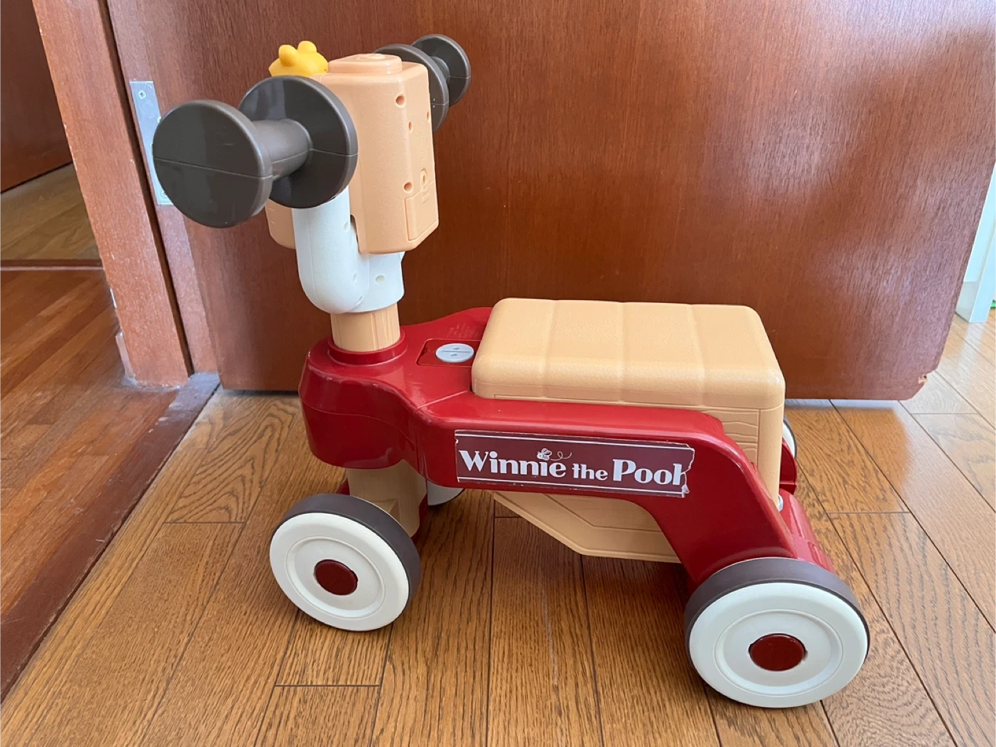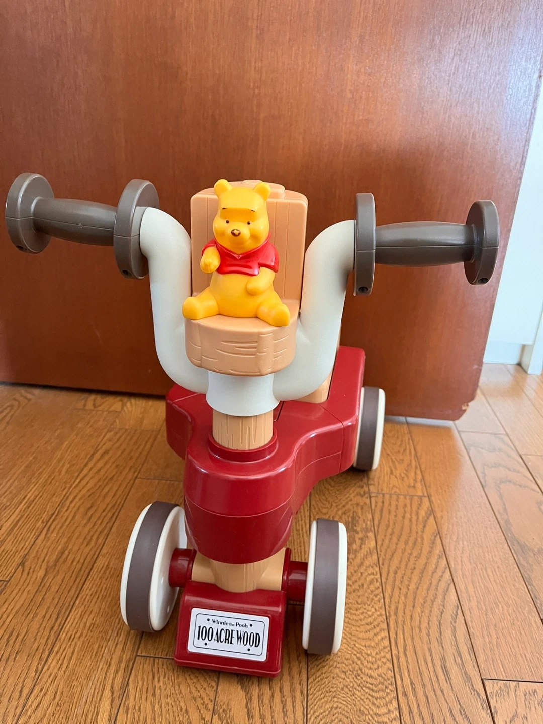プーさんの乗用玩具です。 2wayタイプでイスにして座るタイプとイスの部分をカゴにして押すタイプにできます。 ボタンを押すとプーさんがしゃべります。 ・色:赤、ベージュ、白 ・子供用 ・全体的にきれい ご不明点があればお気軽にご連絡ください