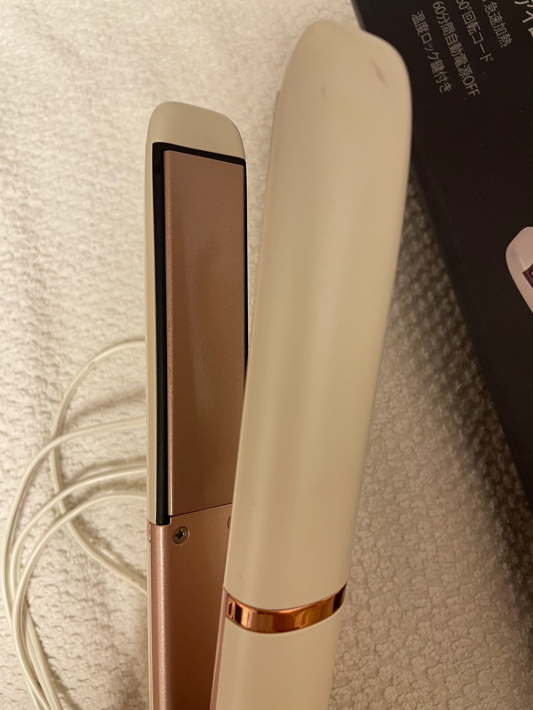 ご閲覧頂き有難うございます。 ヘアアイロン Amzdeal ストレート カール アイロン コテ 普通の中古ですが使用頻度少なく 使用に全く問題ないですが、 コードが少し整髪剤か何かで汚れてます ご理解あるかたに! 白パールで内側がピンクでとっても可愛いです マイナスイオン 150-230°C調節可能 温度ロック機能 海外対応 プロ仕様 自動OFF 【PSE認証済】 ▶【ストレート&カール2WAYヘアアイロン】これ1本だけでストレートアイロン・カールアイロンを楽しめます。透けバング・ラインストレート・ふわふわカール・毛先ワンカール・トップのボリュームアップなどを実現できます。嬉しい電圧100~240V対応で、変圧器無しでも海外で使用可能になります。1本で希望のスタイル自由自在!▶【安心検査】PSE認証済み。 ▶【3Dクッション&セラミックプレート】髪滑りが良いイオンセラミックと3Dクッションプレートを採用しているAmzdealストレートアイロンはスタイリングをスムーズにするだけでなく、スタイリングをする時に3Dクッションプレートが圧力の向きにより左右に動けます。しっかり噛み合わせて、均一な熱を髪全体に与えてツヤのある柔らかな質感を可能にします。髪の水分蒸発を軽減し、ダメージを最小限にします! ▶【縮毛矯正レベルの230℃急速加熱】AmzdealストレートアイロンにはハイパワーのPTCヒーターを搭載し、熱伝導が高くて素早く均等に熱を伝えます。理想のさらツヤストレートにわずか30秒で180℃に到達します! 梅雨時の湿気にも崩れない綺麗なストレートヘアを今から忙しい朝でも、焦らずにゆっくりスタイリングできます。 ▶【温度ロック機能付&自動オフ】Amzdealストレートアイロンは優しい温度ロック機能を搭載しています。電源ボタンを3秒長押して設定温度がロックされています。使用中、不注意でオフにしたっり、温度が過熱しったりすることを効果的に防止できます。約60分で自動で電源が切れる機能も搭載。より安心してお使いいただけます。一本で好きな時に、好きな所で自由自在にスタイリング! #ヘアアイロン #ストレート #クレイツ #カール #ヘアビューザー