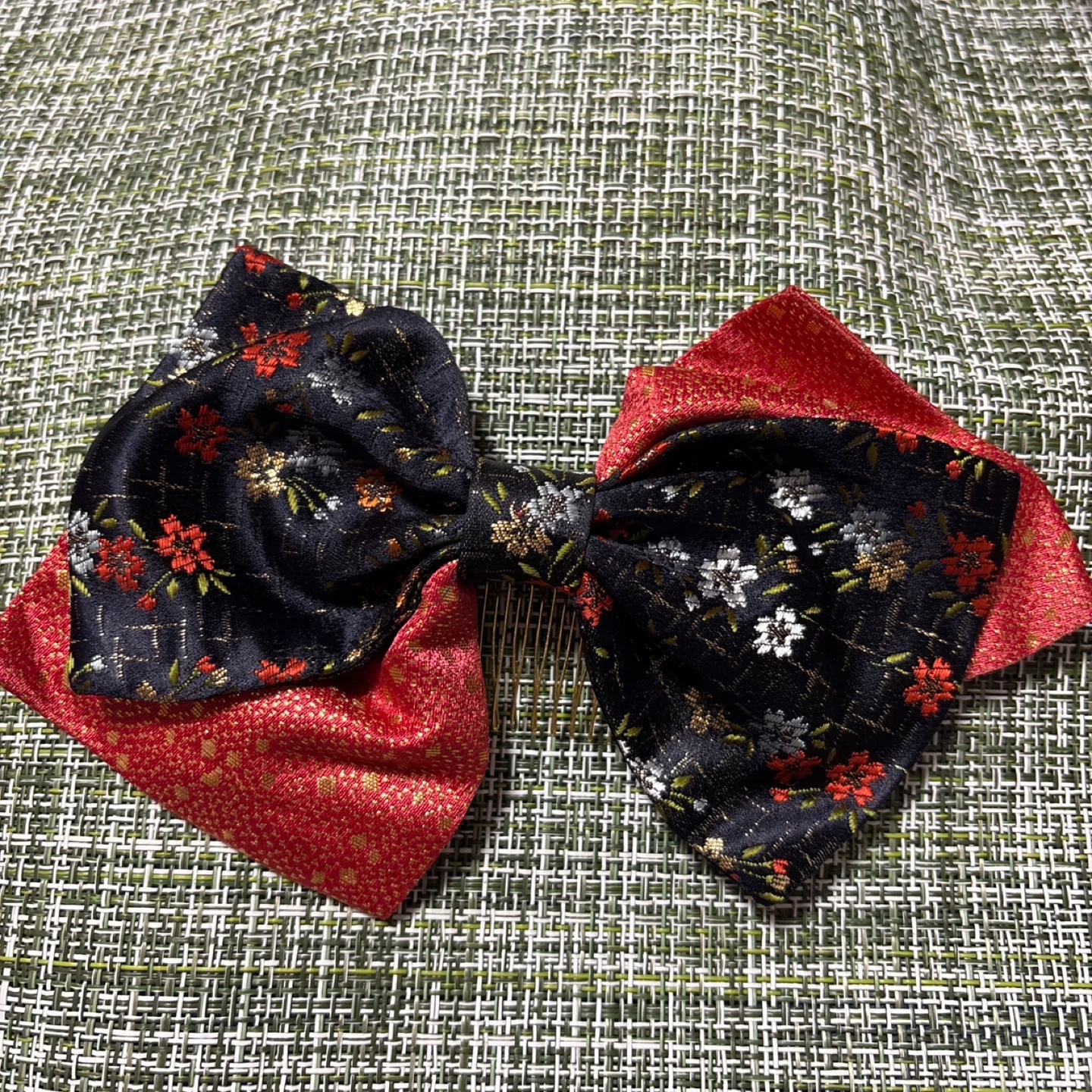 ヘアアクセサリー2点セットです。 ・ピンクのシュシュのようなヘアバンド ・黒と赤のリボンの髪飾り(コーム付き) 中古品であることをご了承ください。 華やかな花柄のリボンで、七五三の装飾に最適です。 - 色: ピンク - デザイン: 花柄のリボン - 素材: 布製 - 装飾: コーム付きのリボン 横長さ 一番長いところで19㎝ リポンの長さは82㎝ リボンは自分の髪に結ぶ物だと思います。 箱は付いておりません。
