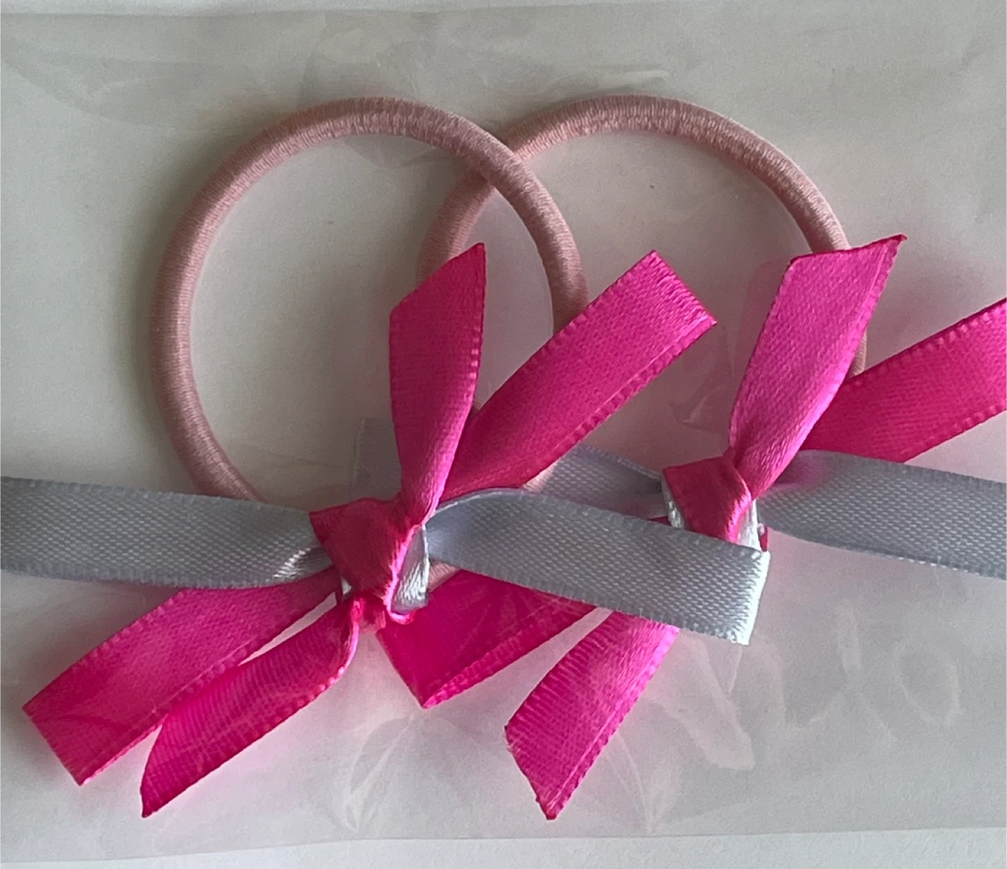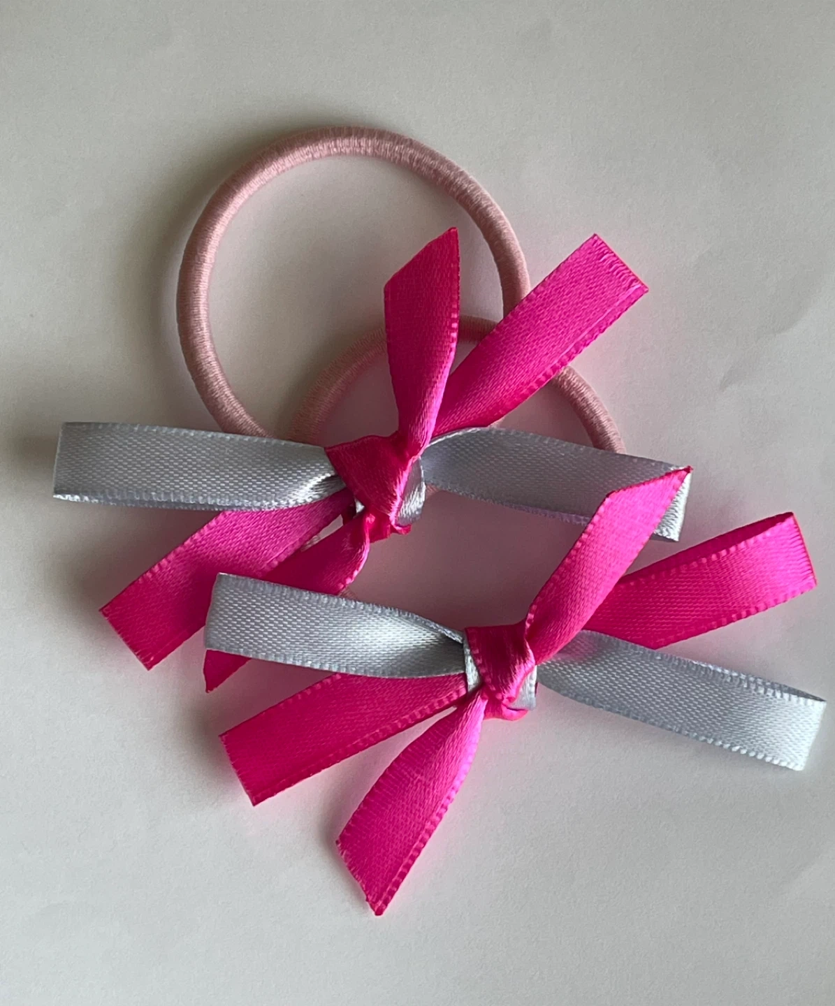 ヘアゴム リボン付き (ピンク&シルバー)2個セット