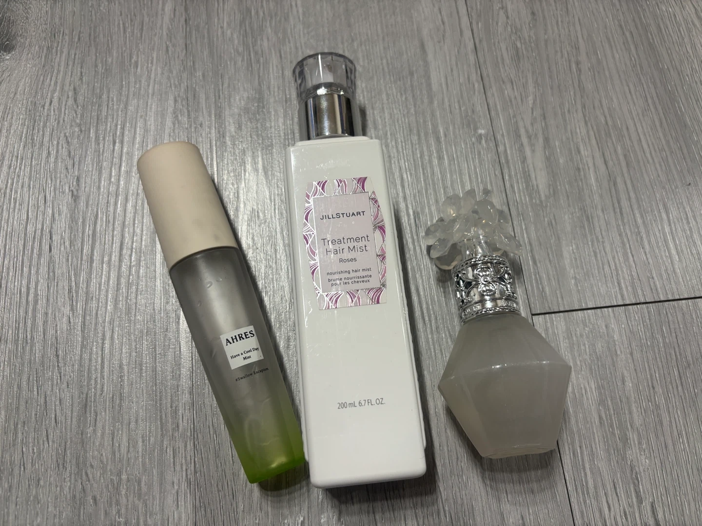 ① ジルスチュアート トリートメント ヘアミスト ロージーズ →残量9割(数プッシュ試したのち保管していました) ② AHRES アーレス ボディミストC 45ml → 残量8割 ③ JILLSTUART ジルスチュアート クリスタルブルームスノー 30ml → 残量:9.8割  (香り確認のために2プッシュして保管していました) お譲り日時相談して決めれたらと思います!