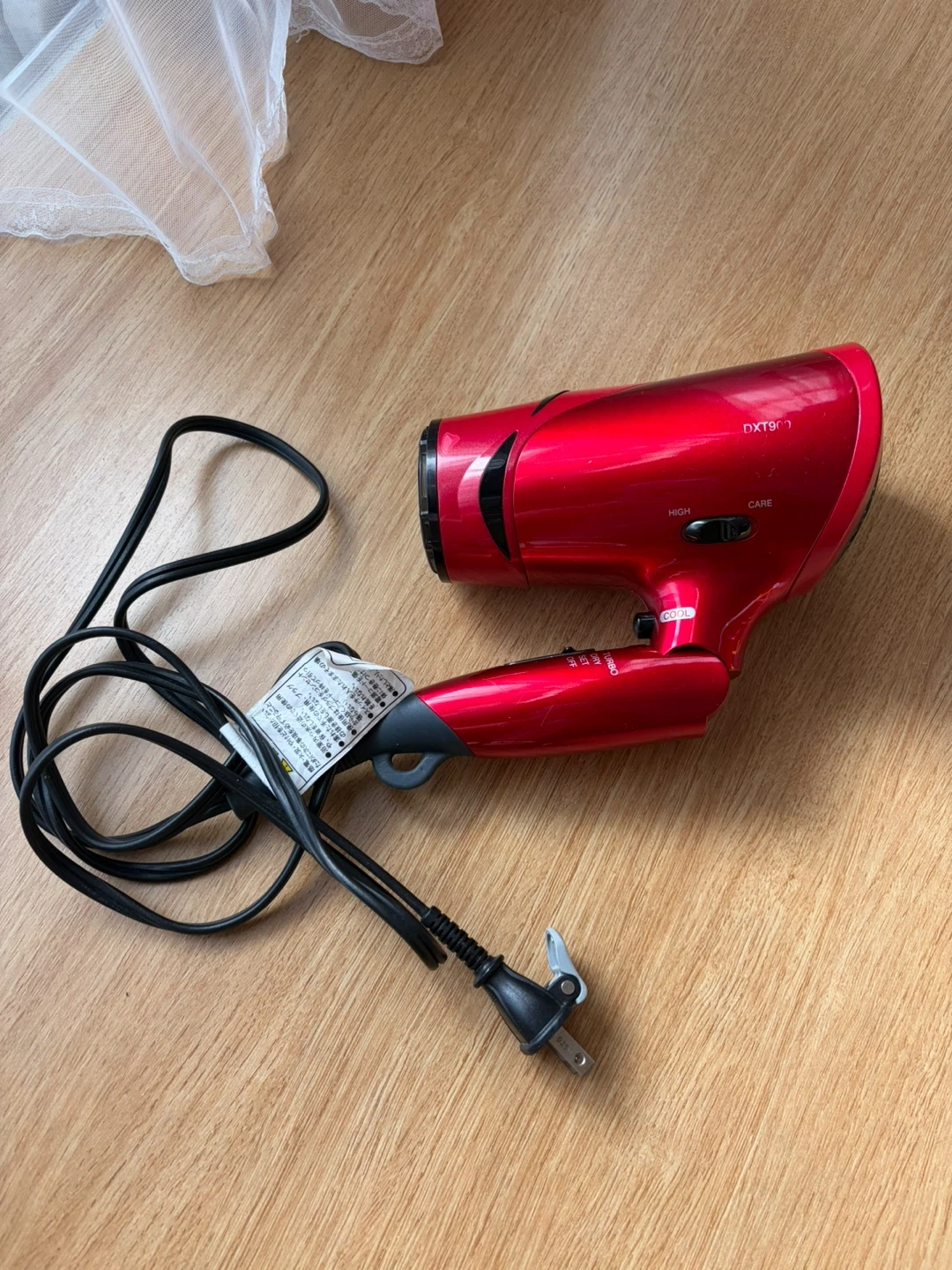 ヘアードライヤーです。 ・カラー:レッド ・型番:DXT900 ・使用感あり 動作に問題は無いありません。 付属のベッドはありません。 新しいものに買い替えたため捨てるのは勿体ないのでどなたか使用される方 中古品であることをご了承ください。