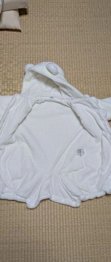 フリース素材のホワイトのフード付きアウターです。ポンポン装飾付きで可愛らしいデザインです。 - 色: ホワイト - デザイン: フード付き、ボタン付き、ポンポン装飾 - 素材: フリース - サイズ 50-70センチ ご不明点はお気軽にお問い合わせください。