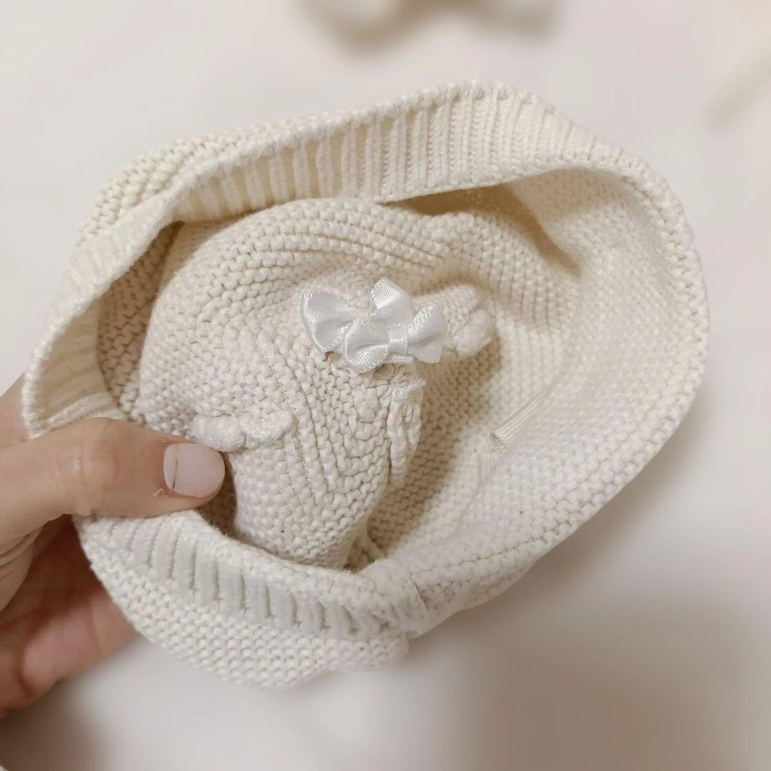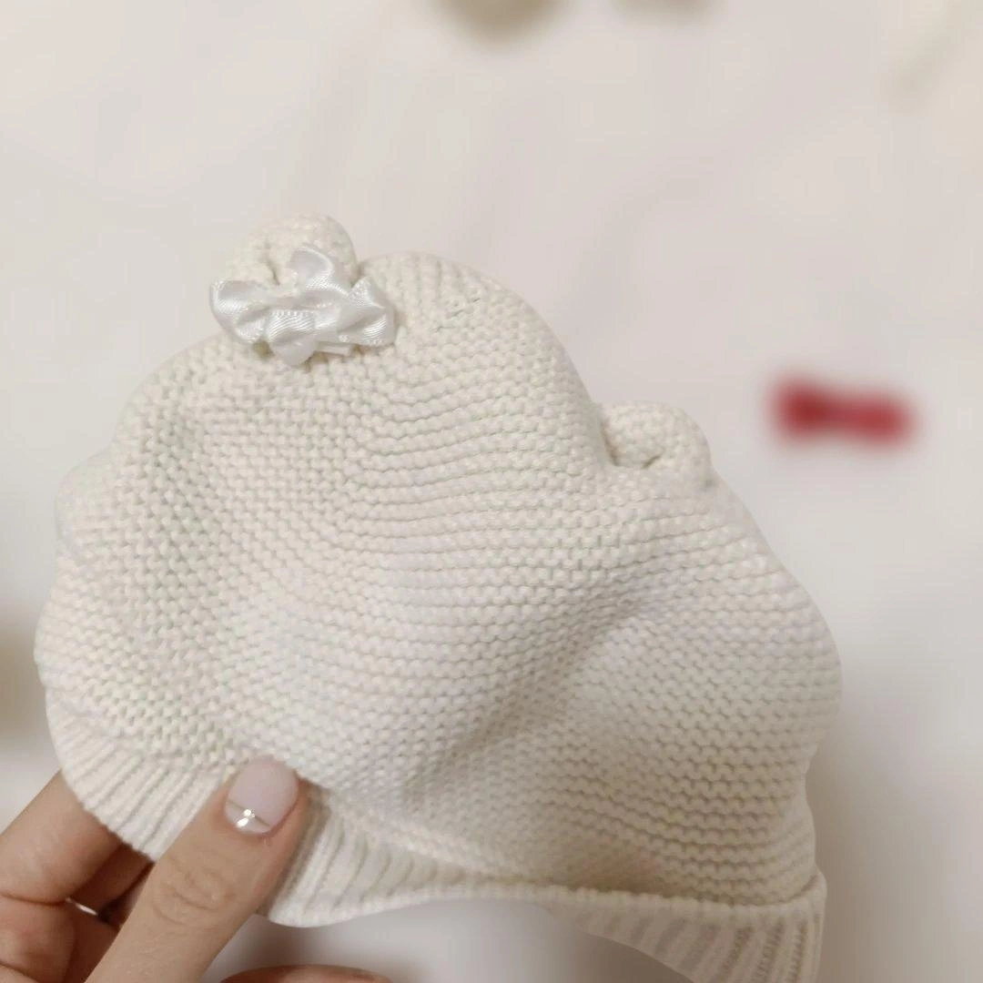 帽子3点セットです。 どれもそこまでかぶってくれず美品なものが多いかと思います。 ・ベビー2-4ヶ用の冬用耳当て付き帽子  エイチアンドエム 美品 ・6ヶ月くらいで使っていたニット帽  リボンは付け替えできます。(私がつけました)  リボン赤と白使わないときは中に収納できるのと、  帽子の裏にリボンテープをつけてあり、  落下防止のクリップなどで留めておけます。  抱っこ紐と繋いでいつの間にか帽子なくなってた!  を防ぐために縫い付けています。 ・52-54の帽子1-3歳で使っていたと思います。  耳付きが好きでまとめていかがですか(⁠^⁠^⁠) - サイズ: 4-8M - ブランド: Aurelia KOBE - 色: アイボリー - デザイン: ポンポン付き - 素材: アクリル100% ご覧いただきありがとうございます。 ご希望の方はお気軽にご連絡ください。