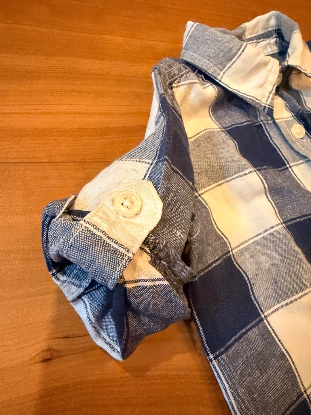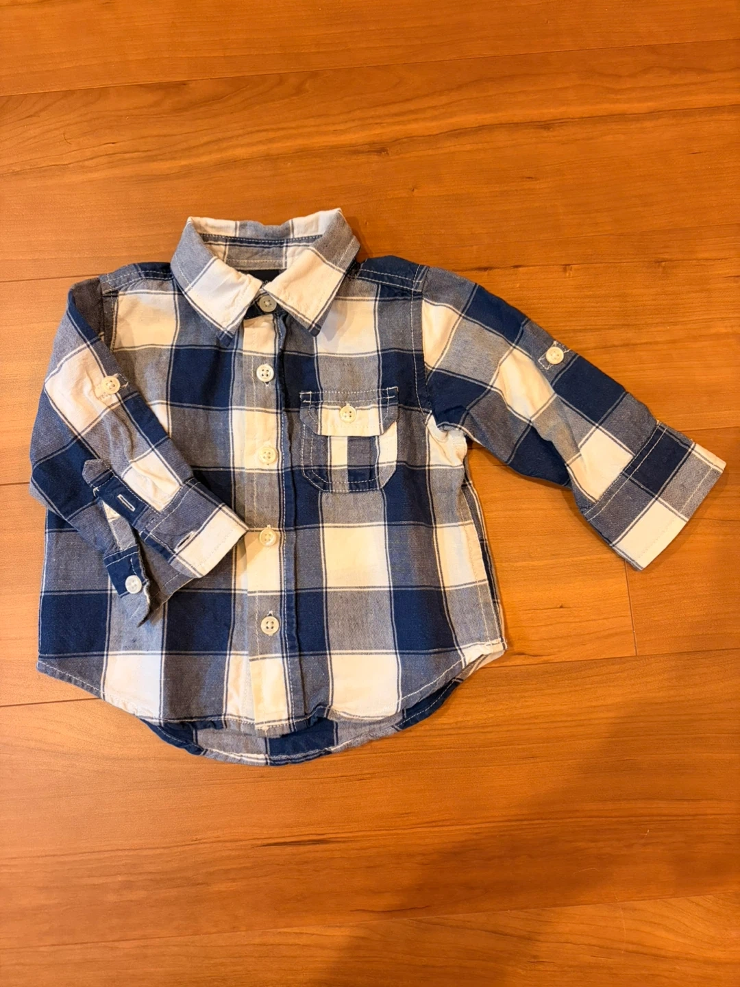 ベビーギャップの長袖シャツです。お食事の時に便利な袖タブ付きです! ・ブランド:ベビーギャップ ・サイズ:80 ・デザイン:チェック柄 ・色:ブルー、ホワイト ・状態:使用感はありますが、目立つ傷や汚れはありません 中古品・お家クリーニングであることをご了承ください。