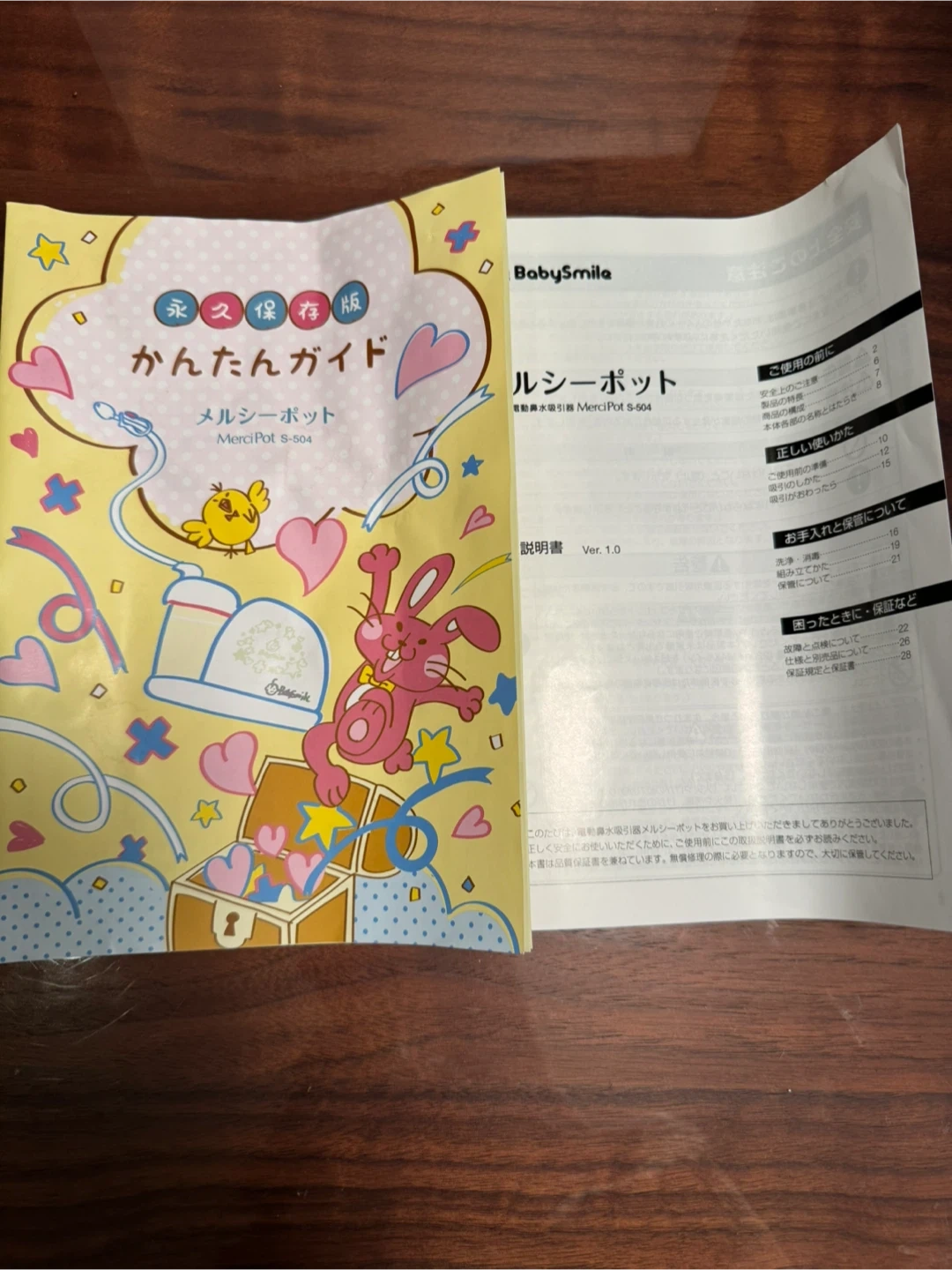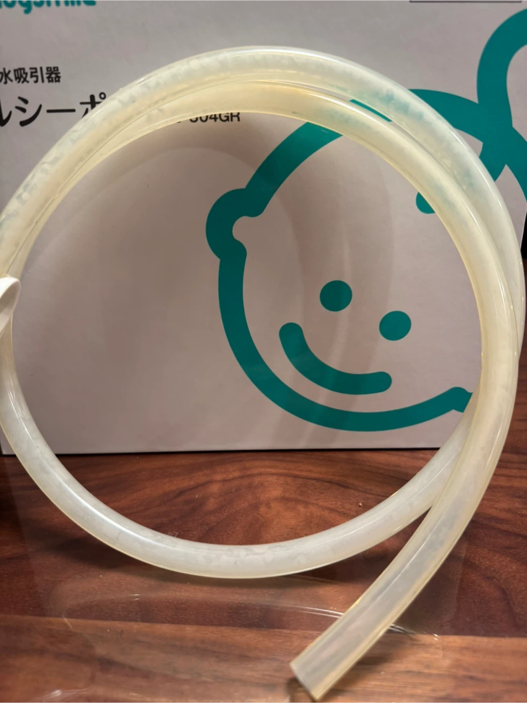 ベビースマイルの電動鼻水吸引器です。 【情報】 ブランド:ベビースマイル 商品名:メルシーポット 型番:S-504GR 付属品:箱、ACアダプター、説明書、チューブ、吸引チップ ※使用は数回のみなのですがチューブは写真のように黄ばみがあります。しっかりと洗浄はしております。 【状態】 使用感少なめ 中古品であることをご了承ください。