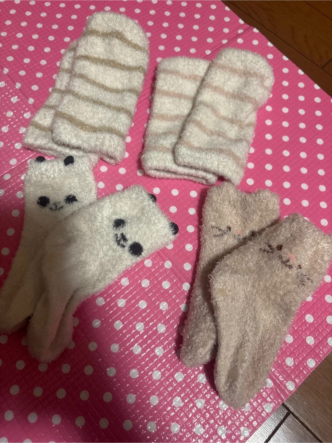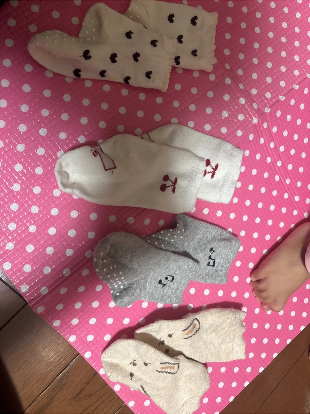 ベビーソックスのまとめ売りです サイズはちょっと忘れてしまいましたが 靴下は9から12?くらいだったかと思います! モコモコの靴下も同じ時期に履いていたので同じくらいのサイズかと思います! それなりに使用感あります!