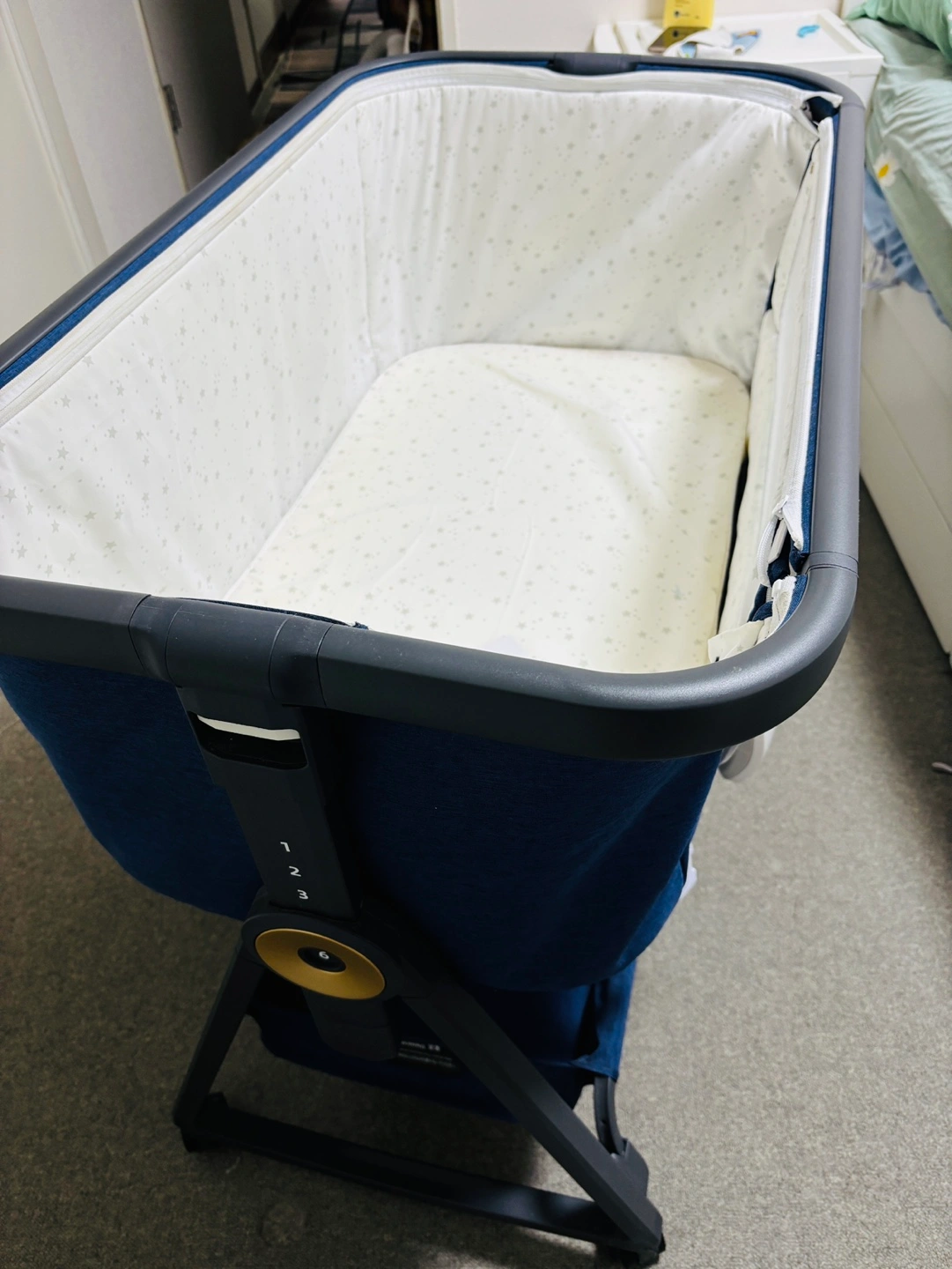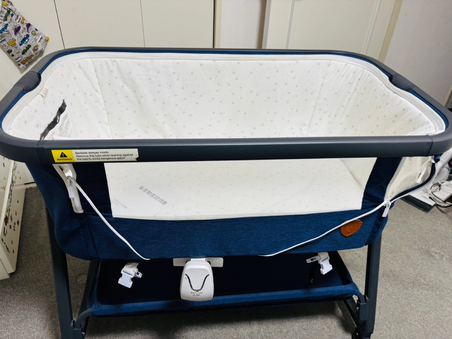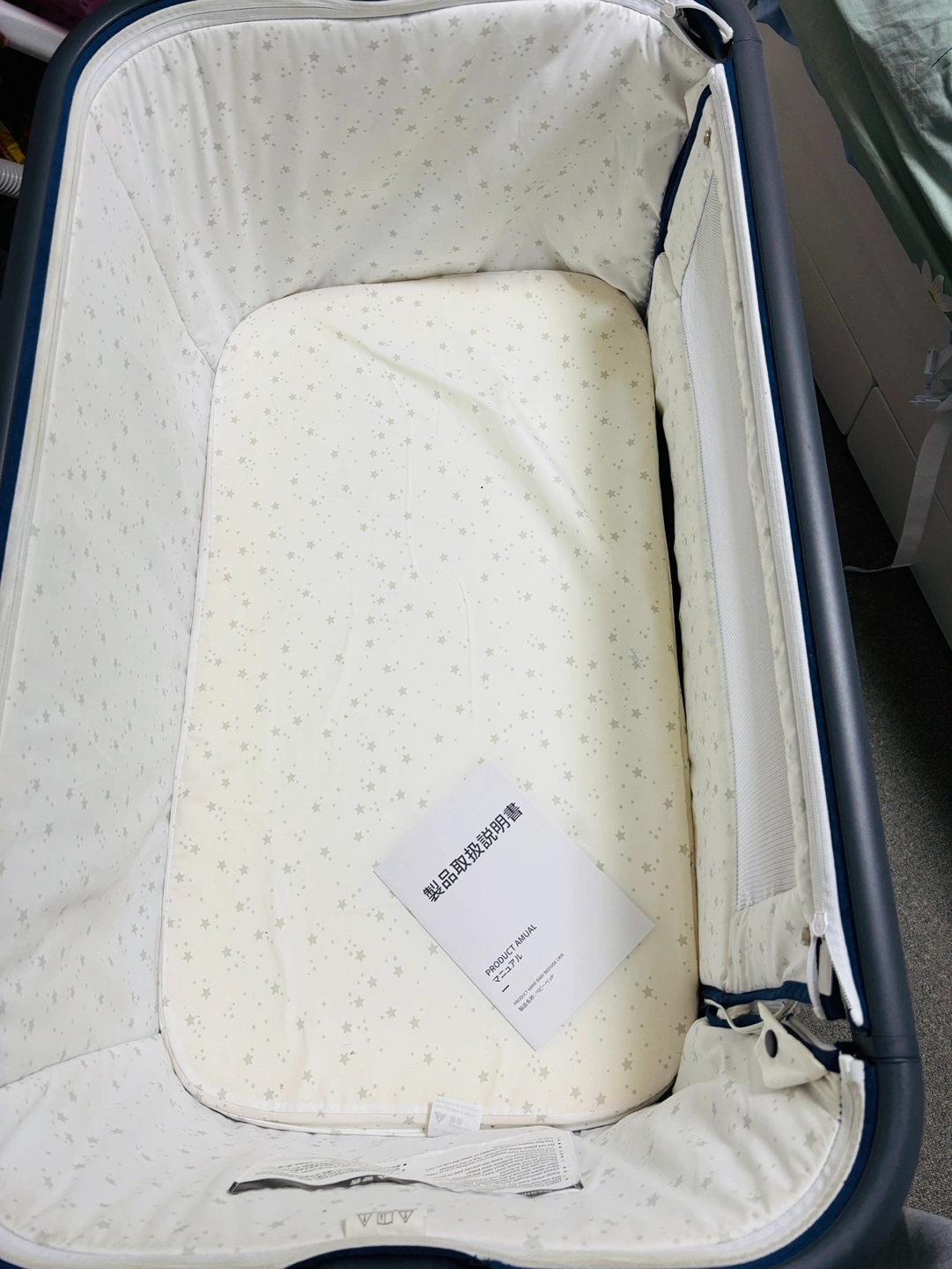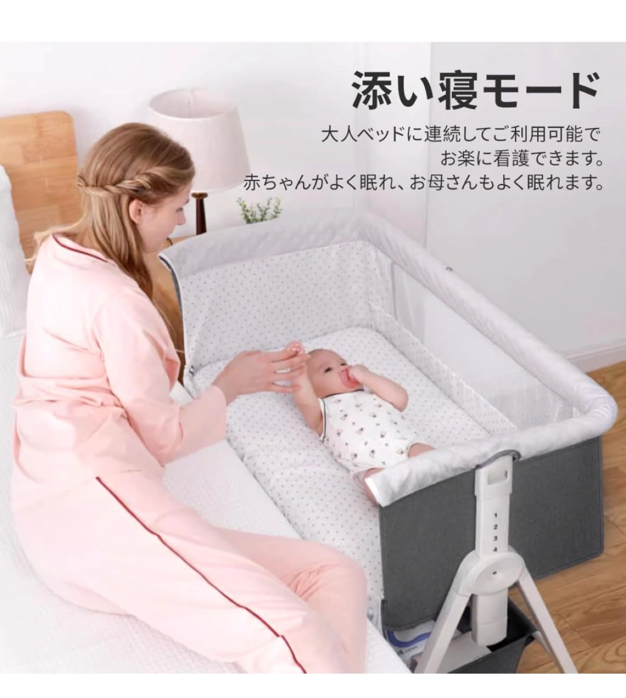 【商品仕様】セット内容:本体、マット、蚊帳、収納バスケット、収納袋。素材:高炭素鋼+綿+メッシュ 重さ:7.4kg 耐荷重:20kgサイズ:92×50×81cm 折りたたみ時:92×55×12cm 通気性優れるリネン 適用年齢:0ヶ月~24ヶ月 【高さ調節可能】高さ6段階調節可能で、添い寝として大人ベッドの高さ同じに調節できます。