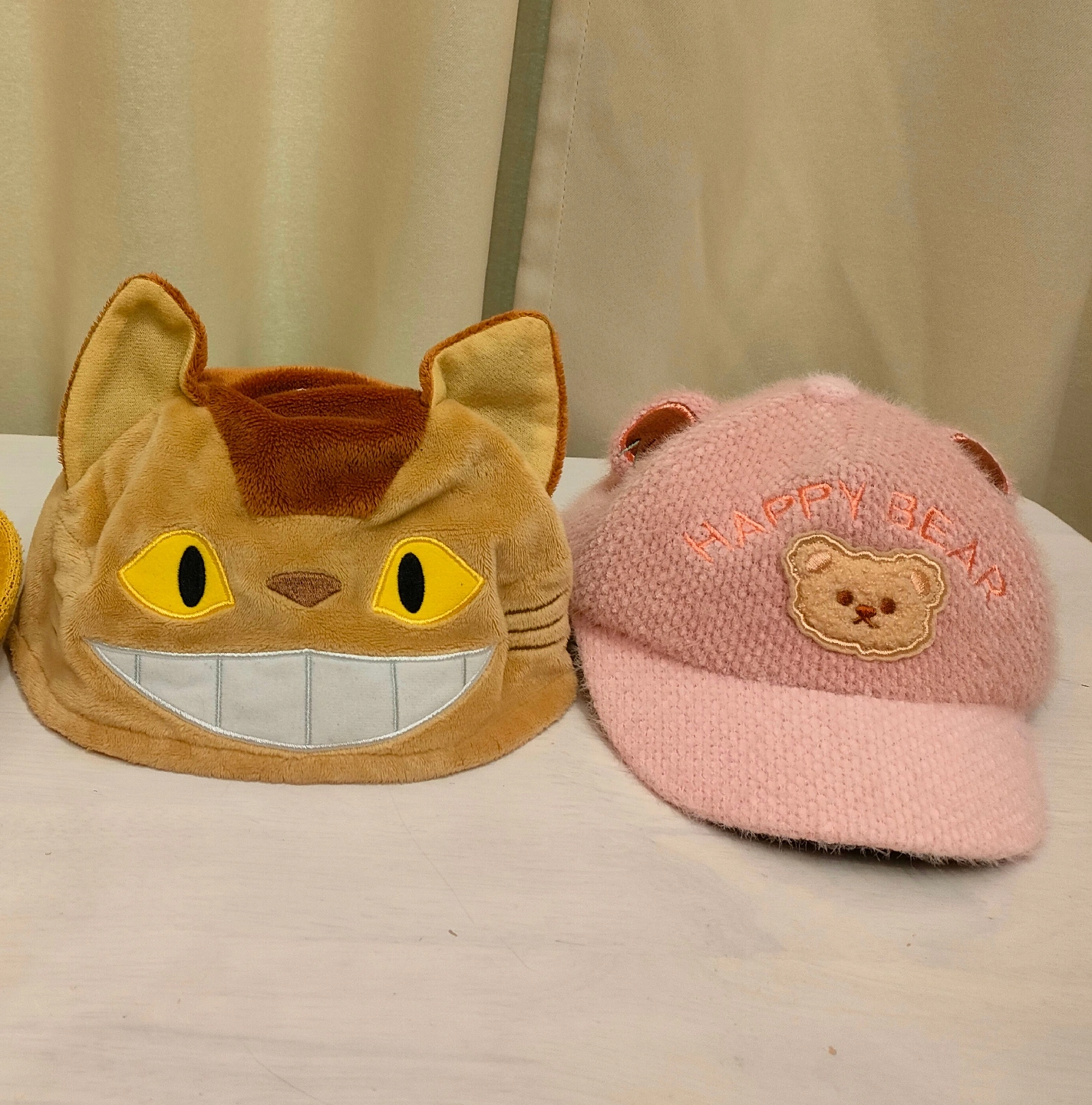 0〜2歳位のお子様向け帽子2点セットです。 どちらも可愛くてお気に入りだったのですが、サイズアウトしたのでお譲りします。 ■共通事項 ・素人検品ですが、目立った汚れ、 キズありません。 ①ネコバス帽子 ・冬用 ・48cm ・内側に名前が書いてあるのでマジック で消してあります ・若干の毛羽立ち、毛玉あり ・衣服用洗剤(ベビー洗剤ではない)で洗濯 済みです ・お下がりでいただき、ワンシーズン使用 ・㈱サン・アローが販売 ②くま耳付キャップ ・冬用 ・48cm ・水で洗えないため洗濯機のエアーウォ ッシュ機能で洗濯しました ・ゴムが着いていなかったので自分で着 けました ・新品購入してワンシーズン使用しまし た ・SHEINで購入 #となりのトトロ #スタジオジブリ #ジブリ #ネコバス #ベビー #ハット #キャップ #帽子 #くま耳 #紫外線対策 #冬用帽子 #防寒