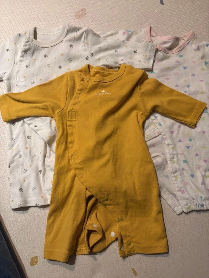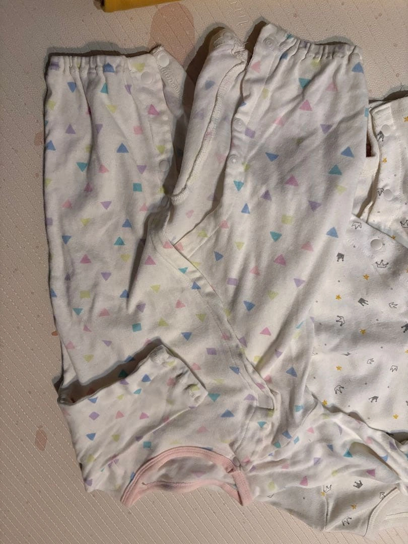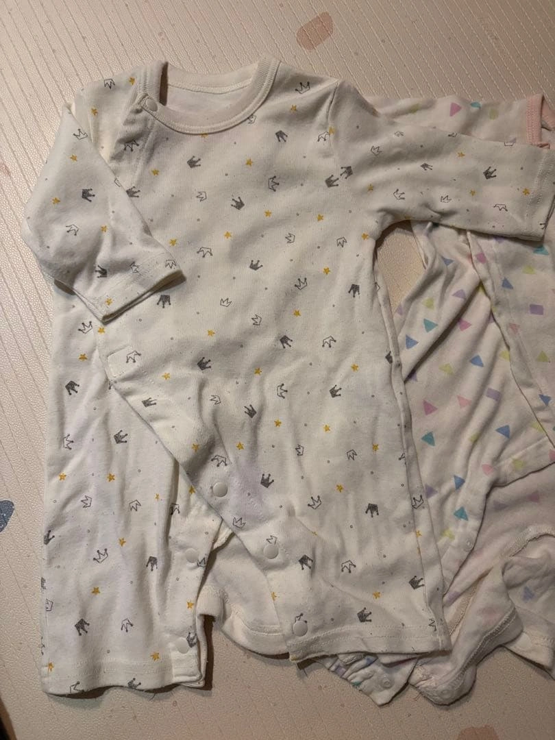 西松屋のカバーオール(ロンパース)50〜60サイズの3枚セットです。部屋着やパジャマにいかがでしょうか? 汚れは無さそうな気がしますが、洗濯や着用による生地の毛羽立ちや色落ち、小さな毛玉などの使用感はあります。 アラウベビーで洗濯済み。柔軟剤は不使用。 喫煙者もペットもいませんのでご安心ください。 コンビ肌着、ツーウェイオール、ドレスオール 月齢0〜4ヶ月頃に活躍するベビー服です。部屋着やパジャマとして洗い替えにオススメです。