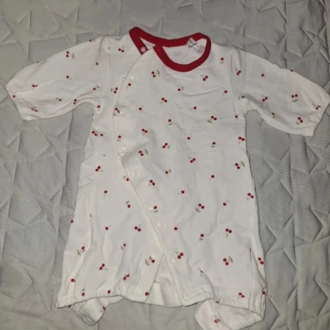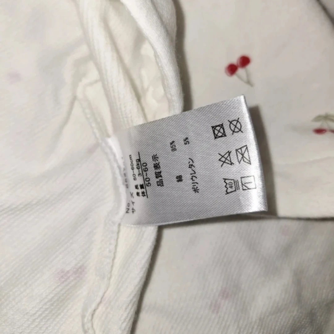 チェリー柄のベビー服です。 サイズダウンのため出品します。 ☆他サイトでも出品してます。なくなり次第消去します。ご了承ください! ・サイズ:50-60cm ・素材:綿95%、ポリウレタン5% ・色:白地に赤のチェリー柄 ・状態:使用感少なめ 中古品であることご了承ください