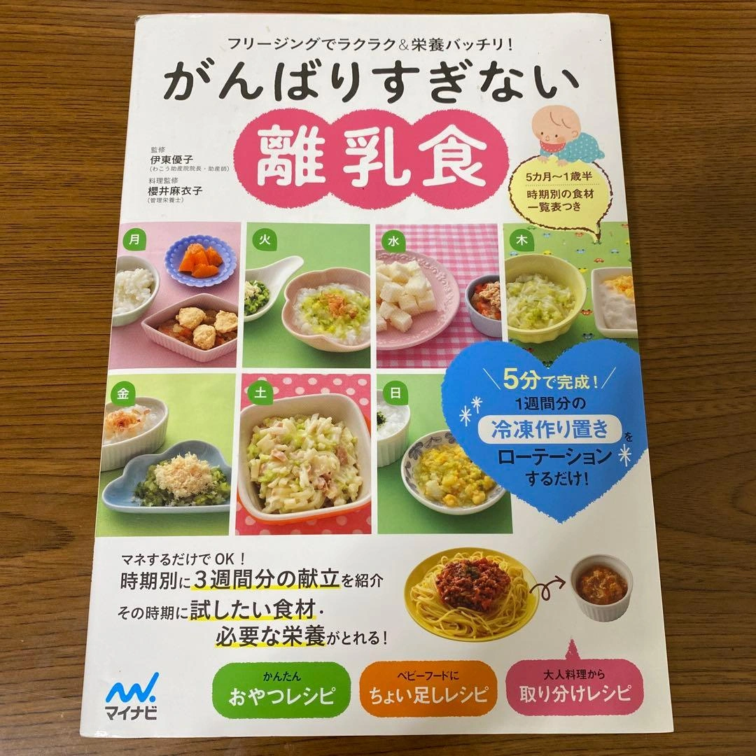 5分で完成!1週間分の冷凍作り置きをローテーションするだけ! その時期に試したい食材、必要な栄養が摂れます! おやつレシピ、ちょい足しレシピ、取り分けレシピ等 写真3枚目に汚れ、写真4枚目のページに強めの折り癖があります。 不要になったので出品します。 中古品にご理解いただける方へお譲りします。 ご覧いただきありがとうございます。 ご希望の方はお気軽にご連絡ください。