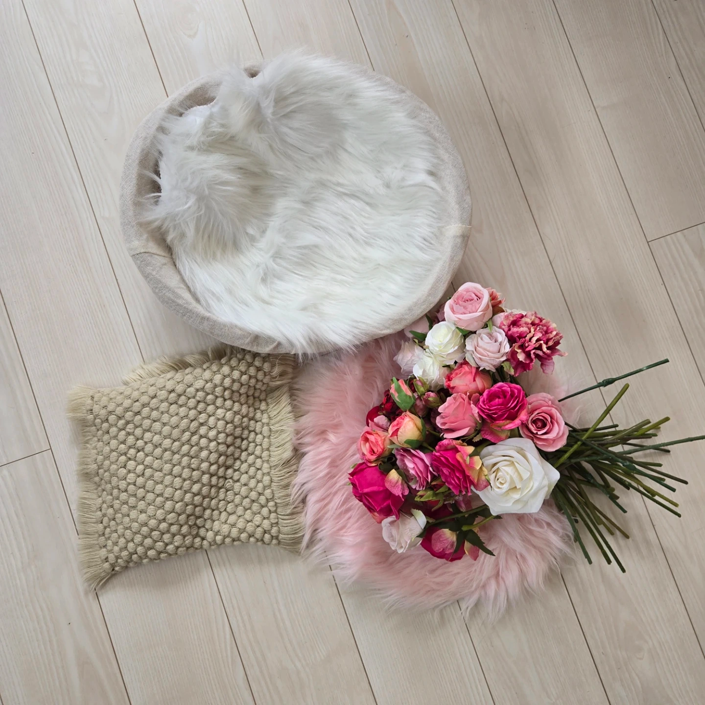 セルフニューボーンフォトの撮影に使いました。 ★バスケット: 編み込みのバスケット(約35×44cm。奥と手前で高さが異なります) (布を外しても、付属の布をかけられる2WAY♩) ★高級アーティフィシャルフラワー(造花): 多彩な色合いの造花 ★ファーラグ: ピンク&白のファーラグ(40cm程度) ★ニットマット: 30×64cm程度 プロに依頼すると高いので、セルフで撮りたい!という方、いかがでしょうか? 特筆すべきキズや汚れは見受けられませんでした。 【注意点】 ・ほかでも出品しておりますため、あらかじめコメント欄にて在庫確認をお願いします ・基本的にはお値下げは行いません ・ペットや喫煙者はいません ・中古品です。見落としあるかもしれませんので、完璧を求める方はお控えください ご不明点があればお気軽にご連絡ください