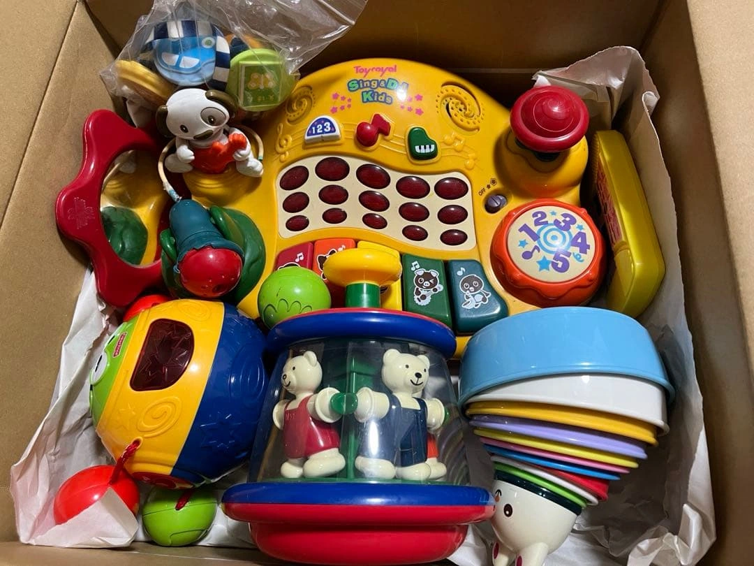・Toy royal…Sing&DJ Kids(ジャンク品) ・Toy royal…うさぎのつむつむカップ ・ambi toys…回転ベアー ・ambi toys…両面ミラー ・Fisher price…まてまてデングリン ・Benesse…しまじろうのおでかけセット ・yellowのピアノ(黒鍵は元々鳴りません) (※各おもちゃの名称は正式名称ではないものもあります) ※ジャンク品以外は、音が鳴るなど動作確認済みです。電池も入ったままお送りします。 ※ジャンク品に関して… ①マイクのコードが切れています ②恐らく電池部分の金具の問題で接触不良なのかと思います もし、修理できる方いらっしゃれば、イヌが動いたり楽しい音がたくさん鳴るので復活して楽しめたらいいなぁと思います。 いろんな音や仕組みに触れる事で、それぞれ楽しく遊べるので、まだ小さいお子さんにお試しにでも使ってもらえたら嬉しいです♪ - おもちゃセット: 多様な知育おもちゃが含まれているセット - 色: カラフルなデザイン - 対象年齢: 幼児向け - 機能: 遊びながら学べる知育機能 ご覧いただきありがとうございます。