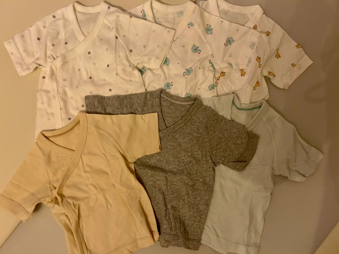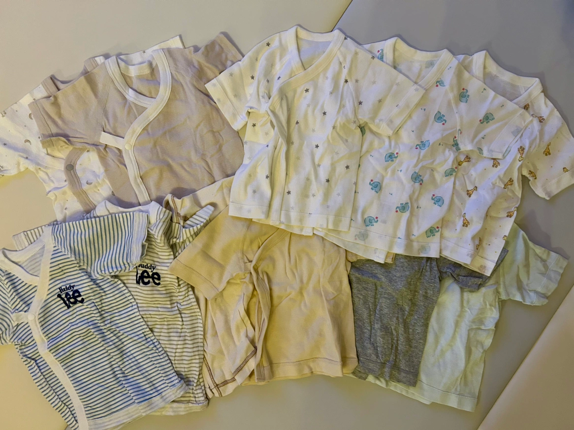 ベビー用の半肌着11枚です。 出産準備で購入し水通ししましたが、 他にも買い過ぎてしまったため こちらは一度も結局着用せず そのまま畳んで密閉袋に入れ自宅保管しておりました。 昨年の2月頃購入したものです。 サイズは全て50〜60サイズです 写真2枚目の6着はユニクロのものです 「ヨレにくく物もいいから肌着はユニクロがいい」 と先輩ママさんに教えていただき 店頭では手に入らなかったため わざわざネットで購入しました 確かに他のものと比べても 肌触りも良く生地も良いと思います 写真3枚目の2着はLeeのものです デザインがとても可愛く購入しました 写真3枚目の2着は西松屋で購入したものです お取引は浦和から車で30分以内の場所でお願いします。 平日日中の方が都合がつきやすいですが 休日でも相談可能です。 これから産まれてくる赤ちゃんのお役に立てれば幸いです。 よろしくお願いいたします。