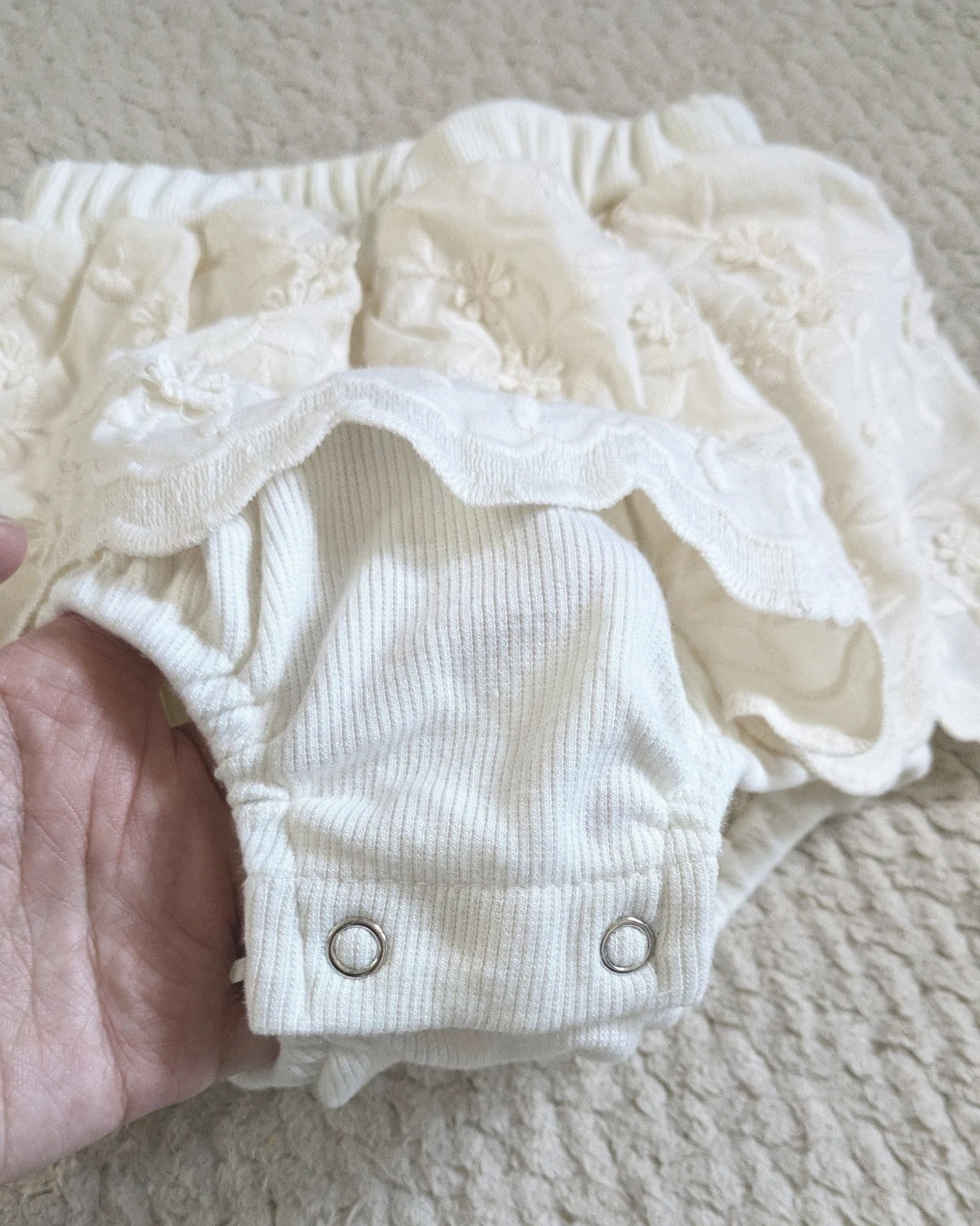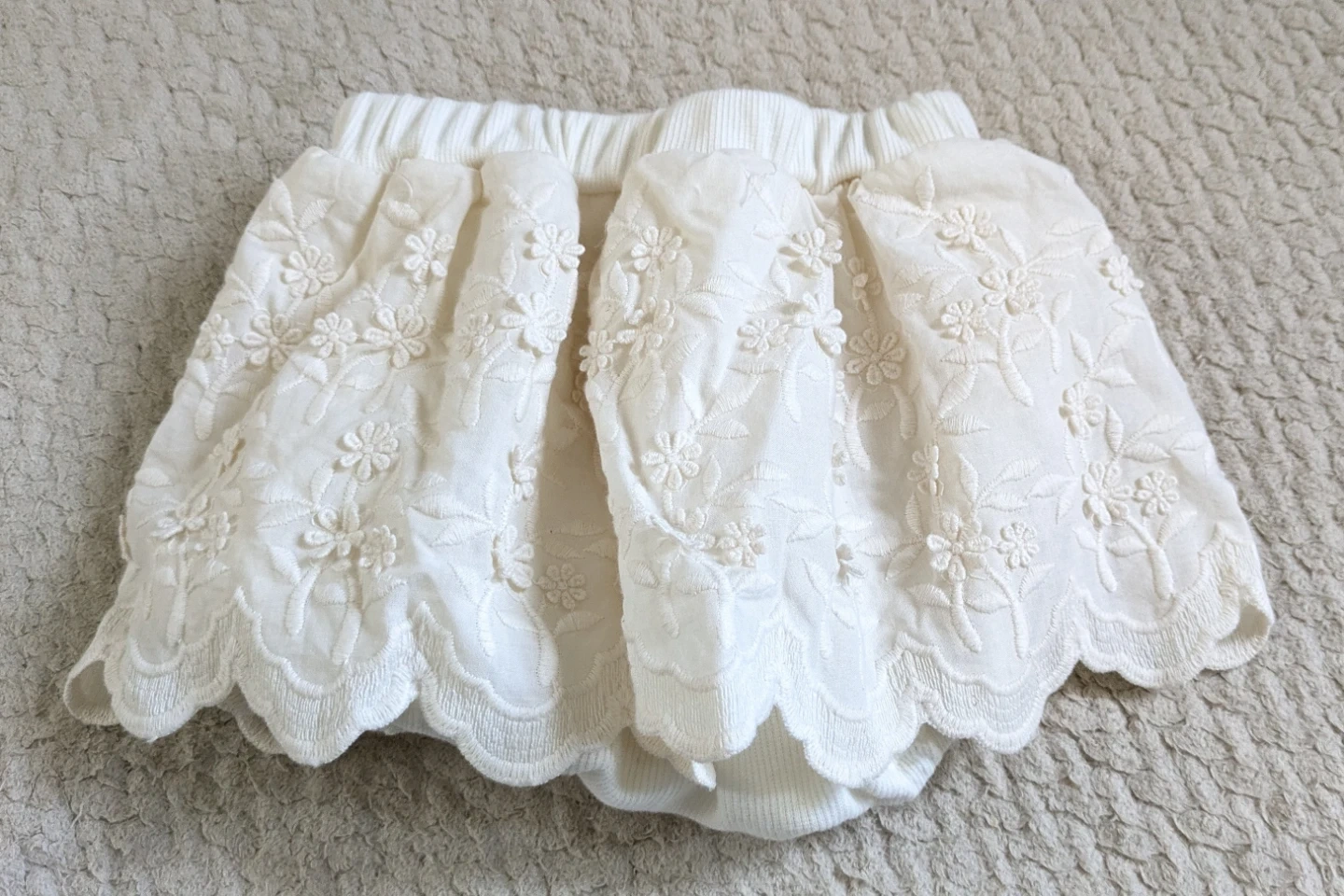 韓国ベビー服Bebe Holic ベベホリックのブルマスカートです アイボリーレース ・ブランド:ベベホリック ・サイズ:L(90) ・カラー:ホワイト ・花柄の刺繍 ・状態:新品、試着なし ご不明点があればお気軽にご連絡ください