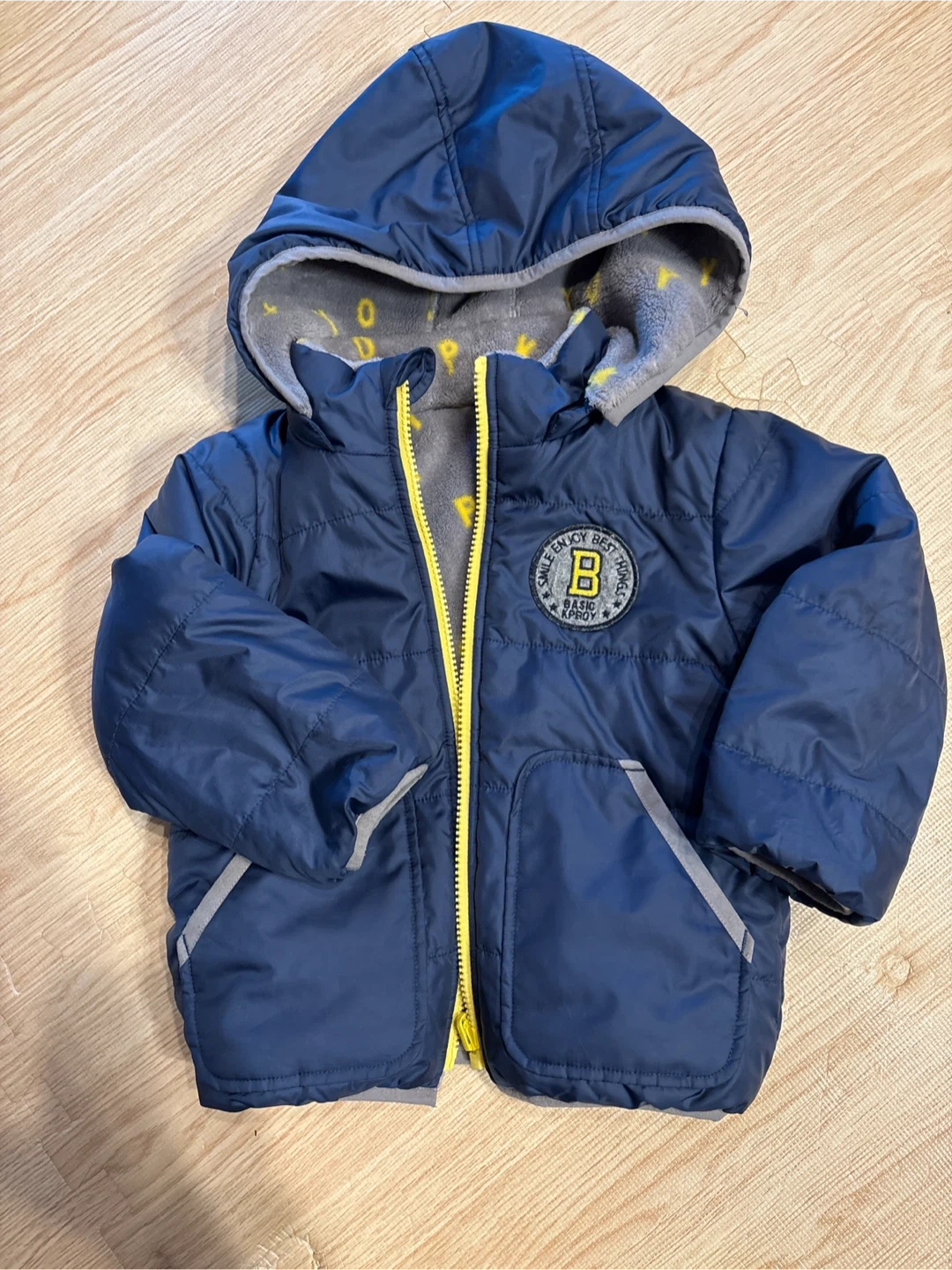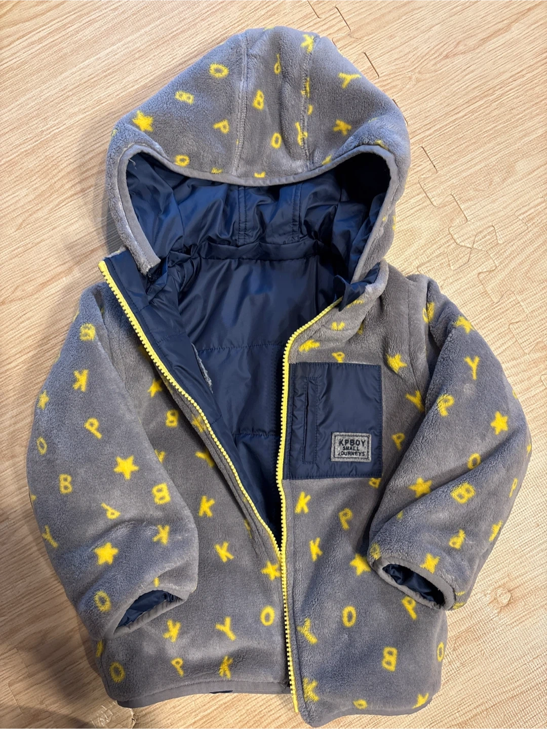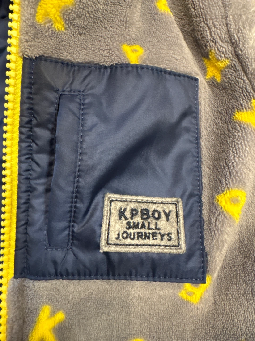 ベーシックケーピーボーイのアウターです。 ・サイズ:100cm ・色:ブルー、グレー ・リバーシブル ・ロゴに多少毛玉あり ・目立つ傷や汚れなし 中古品であることをご理解ください。 ご不明点があればお気軽にお尋ねください。