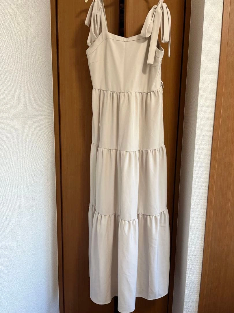 ベージュのキャミソールティアードロングワンピースです。 - 色: ベージュ - デザイン: キャミソール、ティアードスタイル 肩のリボンで長さの調節ができます。 ご覧いただきありがとうございます。 ご希望の方はお気軽にご連絡ください。