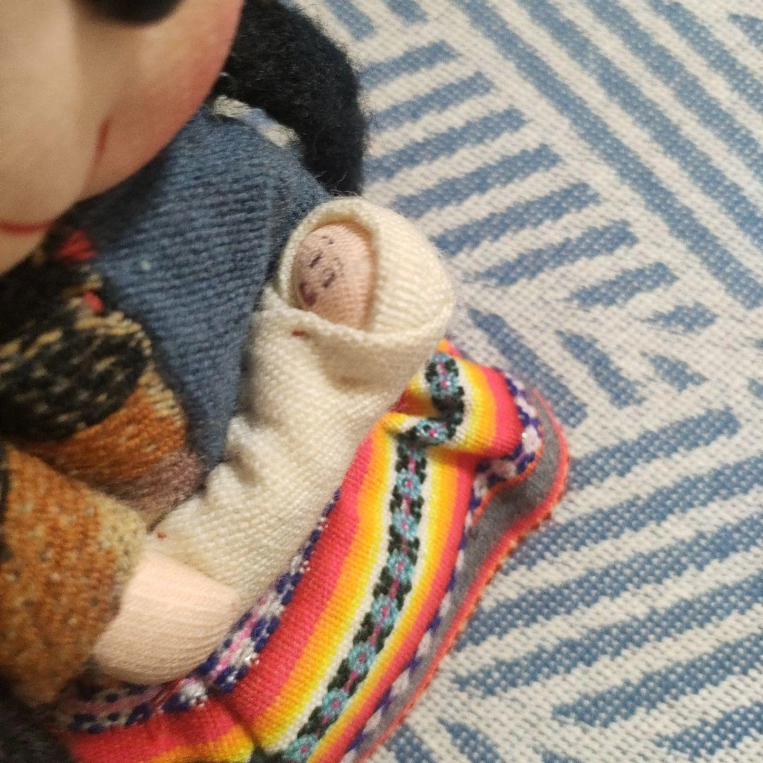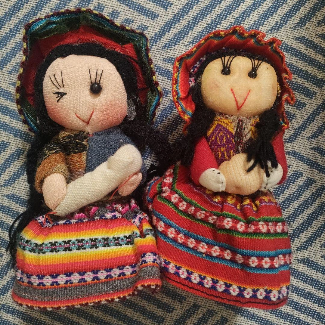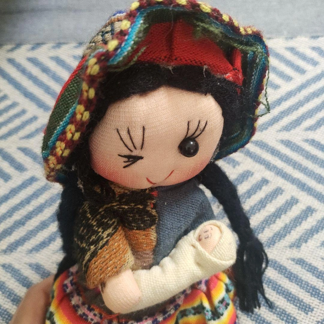 ペルーの伝統的な衣装を着た手作りの布製人形です。 種類: 人形 デザイン: 伝統的な衣装 素材: 布製 特徴: 手作り、表情豊か サイズ: ジャガイモを持つ女の子 17センチ 赤ちゃんを抱く女の子19センチ ご覧いただきありがとうございます。 数年前にペルーで購入した手作りのお人形です。自宅で飾っていました。 大きな汚れはありませんが、2つとも女の子のピアスが外れてしまっていおり、ジャガイモも持っている女の子の顔の布が薄くなっている箇所があります。 上記、気にならさらない方にご検討頂けたらと思います。