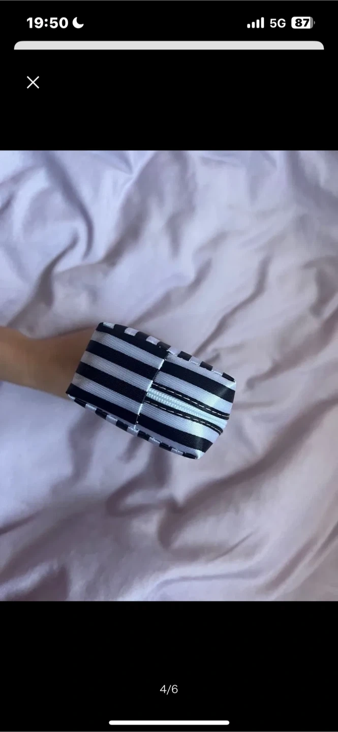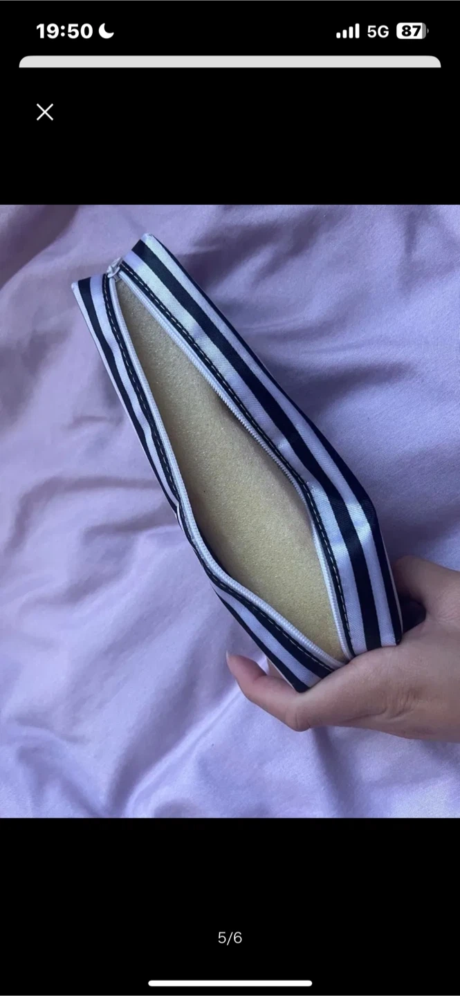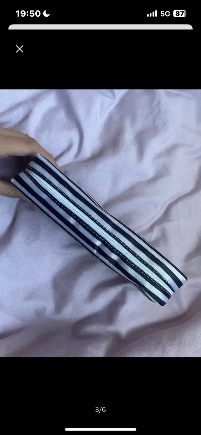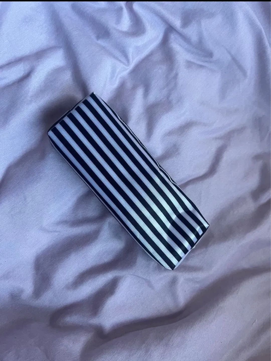白黒のストライプ柄が特徴的なジッパー付きのポーチです。ペンケースや筆箱として文具屋で売られていた商品ですが、小物入れとして、化粧品やアクセサリーなどを収納するのにも便利です。 薄い生地で驚くほど軽いです。 このように中に型崩れ防止用のスポンジが入っているとおり、一度も実利用しておりません。新品未使用です。 もしかしたら発送時に送料節約のためにスポンジを出してお送りするかもしれません。 【カラー】マルチカラー(白黒ストライプ) 【商品の状態】新品未使用 よろしくお願いいたします。