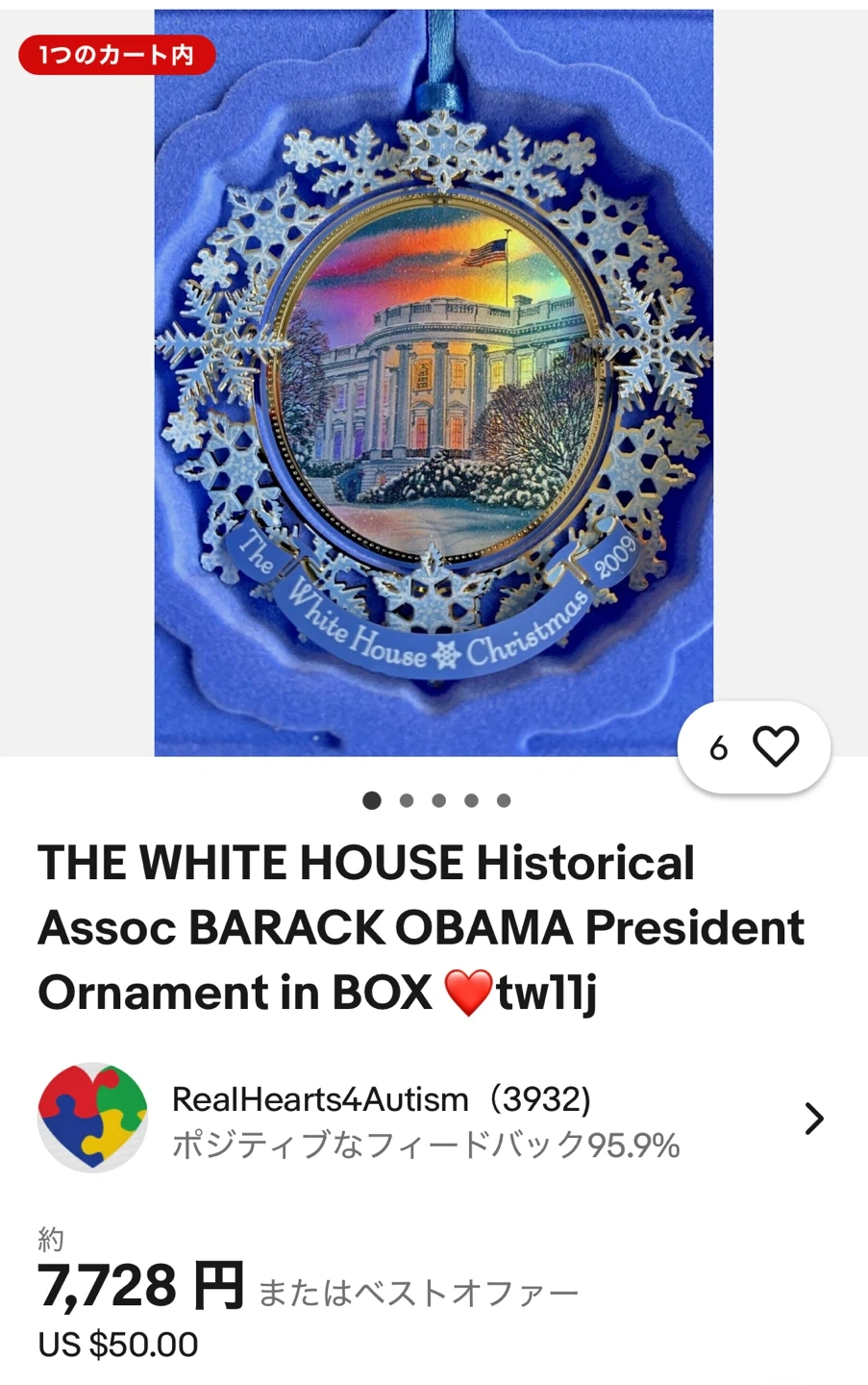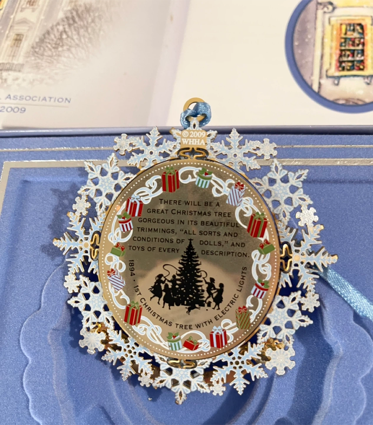 ホワイトハウスのクリスマスオーナメントです。 ⭐︎まとめてお値引きも致します⭐︎ ・オーナメント:2009 年 ・「The White House Historical Association」の記載あり ・箱付き 美品 ・未使用 ホワイトハウス歴史協会による2009年版クリスマスオーナメントのパッケージです。 このオーナメントは、第24代大統領グローバー・クリーブランドに敬意を表したもので、クリーブランドの若い家族のクリスマスツリーでの特別な場所を描いています。 中古品であることご了承ください。
