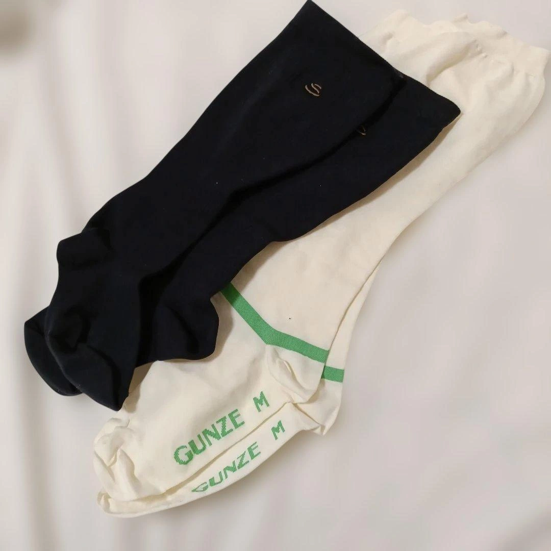 着圧ソックス2セットです。 - 色: ホワイト - デザイン: 着圧ソックス 一度使用後、ホームクリーニングして保管しておりました。黒は未使用です。特に目立つ汚れはないかと思います。 あくまで中古品のため神経質な方はご遠慮ください。 問題なく使用できました。 - モデル名: gunze М、グンゼ - サイズ 23の私が履けました ご覧いただきありがとうございます。