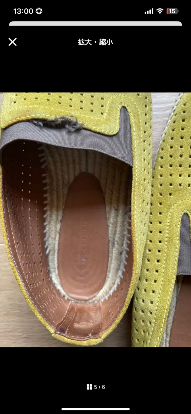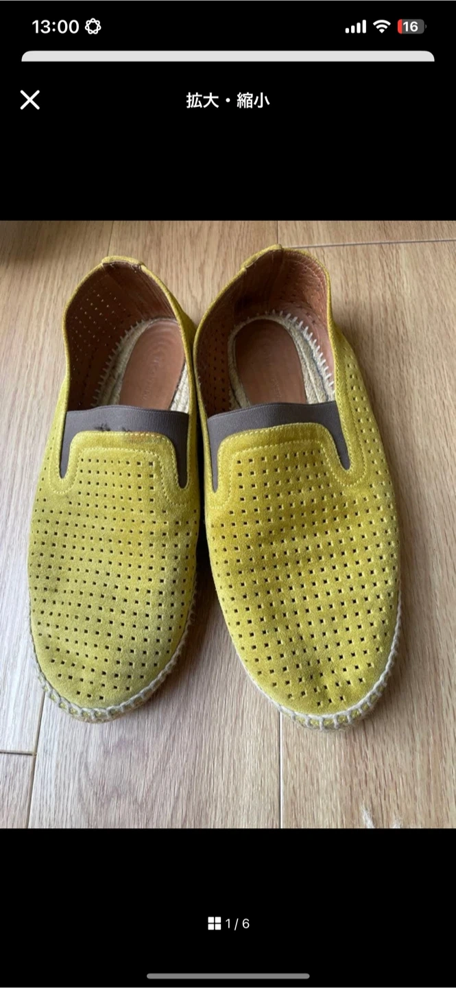 イエローのスエード素材でメッシュデザインのスリッポン。 - 色: イエロー - 素材: スエード - デザイン: メッシュ穴あき - ダメージ: 側面に小さな傷あり Size:28 購入前に着用して、後で支払うこともできます この靴には完全に修理できる破れが2つあります。 ご覧いただきありがとうございます。
