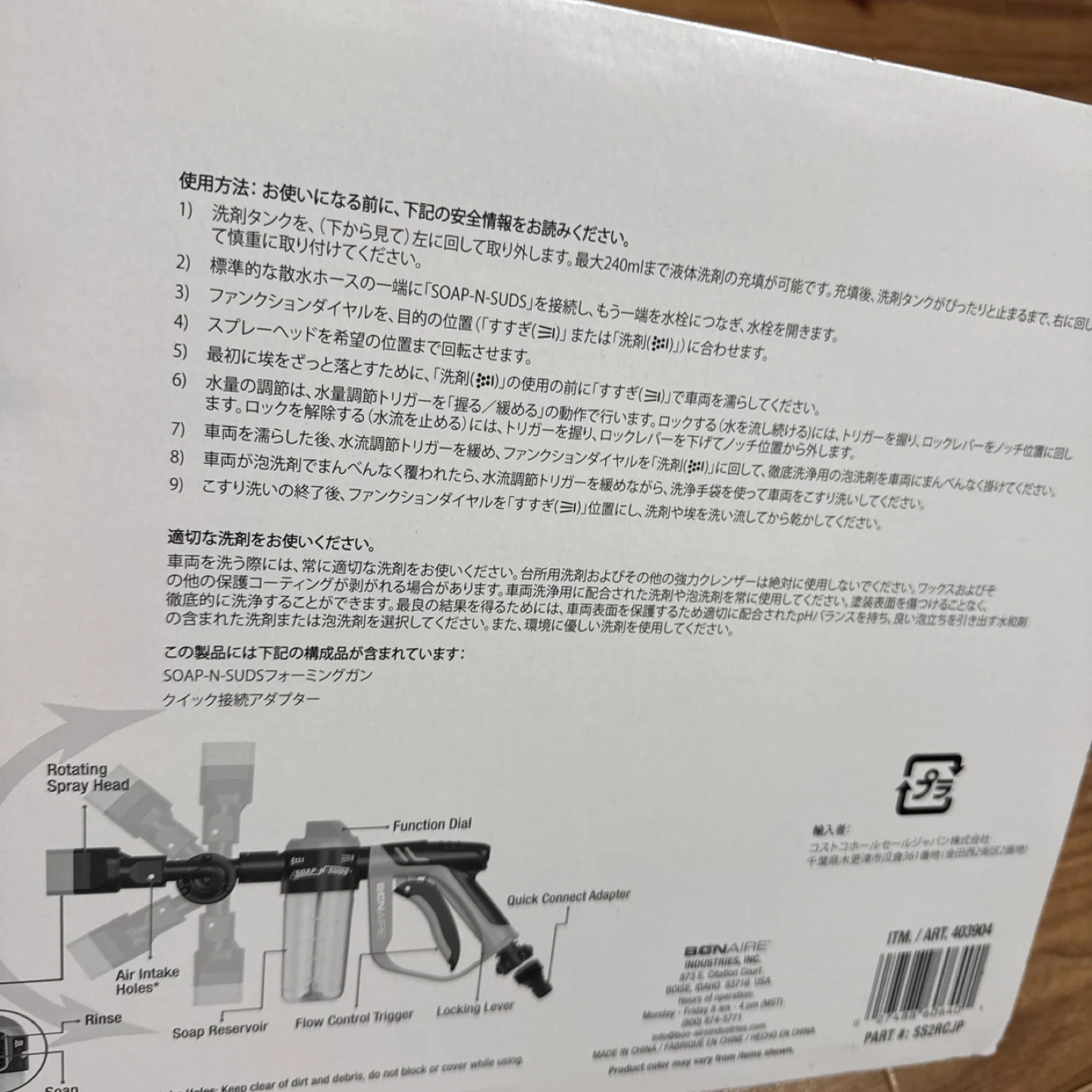 ボネールの洗車用フォームガンです。 【情報】 ブランド:ボネール(BONAIRE) 商品名:SOAP-N-SUDS FOAMING WASH GUN 【状態】 未使用品と思われます ご不明点があればお気軽にご連絡ください