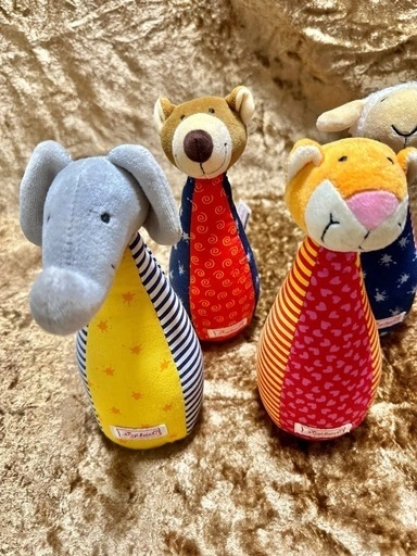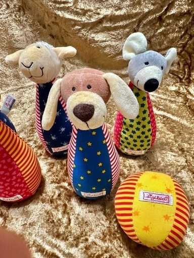あたたかさおもちゃがたくさんあり、こちらはあまり遊ばなかったため美品かと思います。 子供が使用したものである事と、素人検品ということをご理解ご了承の上、ご検討お願いいたします。 ホームクリーニングを施し、保管しております。 ペットや喫煙者はおりませんので、ご安心いただけるかと思います。 商品の外装梱包には、リサイクル品を使用する場合がございます。予めご了承いただけますようお願いいたします。 にっこり笑顔の動物たち。赤ちゃんから幼児期まで成長にあわせて長く楽しめます。 赤ちゃんの頃は顔の近くで振ってあやしたり、おすわりの頃のおともに。1歳半頃は、握ってはなす、右手から左手に渡すあそびに挑戦。幼児期は、全身を動かすボウリングやおままごとのぬいぐるみに。 対象年齢:1歳頃~ / 原産国:中国 セット内容: ボール×1、ピン×6 お手入れ方法:汚れた場合は、30℃くらいのぬるま湯で手洗いまたはネットに入れて洗濯機洗い(手洗いコース)。※型崩れする場合があるため、お洗濯の際はご注意ください。 ご希望の方はお気軽にご連絡ください。