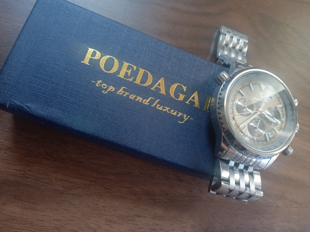 ポエダガーの腕時計です ・カラー:シルバー ・金属製バンド ・箱付き ・使用感少なめ 腕周り細いので細身に調整してもらいました。 中古品であることご了承ください