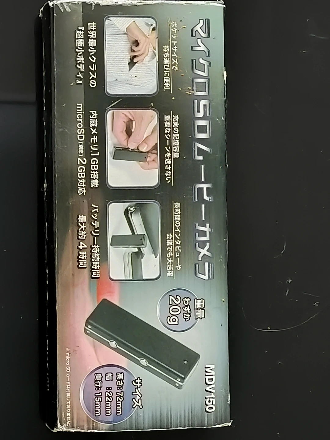マイクロSDムービーカメラ MDV150です。 ・ポケットサイズで持ち運びに便利 ・充実の記憶容量 ・最長時間のインタビューや盗撮でも大丈夫 ・内蔵メモリ2GB搭載 ・microSD 2GB対応 ・バッテリー持続時間 最大約4時間 ・サイズ:高さ72mm 幅22mm 長さ15mm ・重量:20g 未使用品になります。